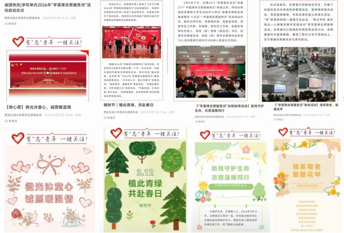 校團(tuán)委高度重視,結(jié)合學(xué)校年度工作要點(diǎn)與育人實(shí)際,于3月5日印發(fā)《關(guān)于開展2026年“學(xué)雷鋒志愿服務(wù)月”活動(dòng)的通知》(西石大團(tuán)發(fā)〔2026〕3號(hào)),對(duì)全年特別是3月份的學(xué)雷鋒志愿服務(wù)工作進(jìn)行了系統(tǒng)安排?!锻ㄖ访鞔_了“服務(wù)重大戰(zhàn)略、踐行為民宗旨、深入基層治理、融匯學(xué)科優(yōu)勢(shì)、厚植校園沃土”五大活動(dòng)方向,為全?;顒?dòng)開展提供了清晰指引。各院(系)團(tuán)委、各級(jí)學(xué)生組織迅速響應(yīng),結(jié)合學(xué)科專業(yè)特色,制定了具體可行的實(shí)施方案,形成了校院聯(lián)動(dòng)、分工明確、責(zé)任到人的工作格局,確保了各項(xiàng)活動(dòng)有計(jì)劃、有步驟地扎實(shí)推進(jìn)。