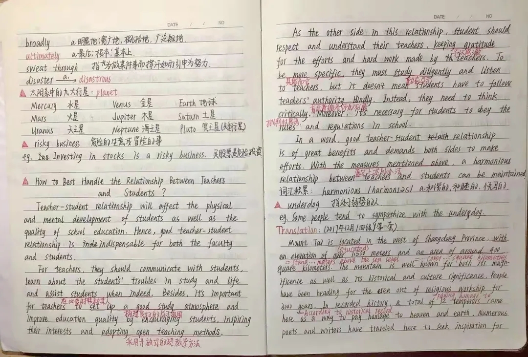 翻開黃云龍的課本和筆記本,你會看到工工整整的書寫和密密麻麻的知識點(diǎn),還有不同顏色標(biāo)記不同的重點(diǎn),看著就讓人覺得思維清晰,內(nèi)容豐富,重點(diǎn)突出。在很多人都容易陷入期末復(fù)習(xí)焦慮漩渦時,這些“寶藏”筆記會幫助黃云龍?jiān)趶?fù)習(xí)的時候做到有條不紊、有的放矢。