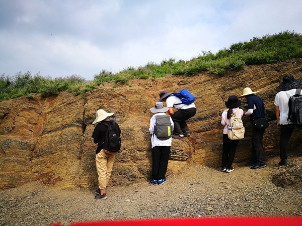 大二暑期開展的是綜合實習,地點在安徽巢湖的實習基地?!按蠖Y束后,學生的專業(yè)課學習增多,有了更豐富的知識儲備,這個階段的實習,對同學們的野外工作方法和技能提出了更高要求?!倍〕蠋熣f,“巢湖觀測點的巖石和剖面中含有豐富的化石,每年都有同學在觀測過程中找到化石,這也是他們實習的‘彩蛋’。”這次實習主要圍繞實測剖面進行,且需要學生在實習結束后完成地質填圖報告。經過一段時間的鍛煉,同學們使用測量工具的熟練度、巖石分類的熟悉度、構造現象的辨別分析能力都得到了提升,切身體會到野外地質工作不能走馬觀花,需要細致記錄、精準測量、大膽想象。同學們切身感受到了老師常掛在嘴邊的那句話:“看山不是山,看水不是水”。在他們眼中,山水不再僅僅是可觀可賞的風景,山如何形成,跨越幾個地層?水從哪里來,如何形成今日形態(tài)?動靜皆有因果。