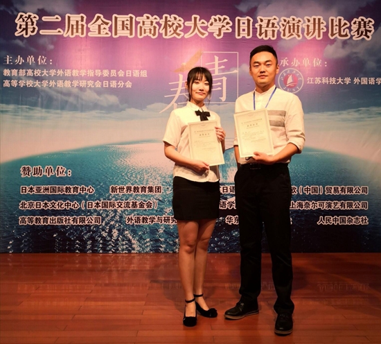 (日語(yǔ)教師陳旭輔導(dǎo)學(xué)生參加2018年全國(guó)大學(xué)日語(yǔ)演講比賽并獲得全國(guó)二等獎(jiǎng))