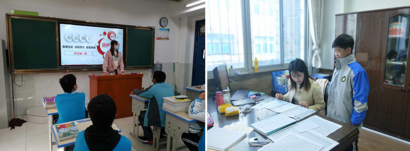 在工作期間,多名研支團(tuán)成員還兼任學(xué)校部分科室行政工作。支教團(tuán)成員基于所在服務(wù)學(xué)校的工作安排,充分發(fā)揮自己所學(xué),完成教育教學(xué)任務(wù)和各項(xiàng)行政工作。同時(shí),通過(guò)人文關(guān)注、友伴關(guān)懷等方式幫助服務(wù)地學(xué)生樹(shù)立成才報(bào)國(guó)的遠(yuǎn)大理想,以人格影響人格、用心靈塑造心靈,踐行研支團(tuán)初心,為服務(wù)地的教育事業(yè)和社會(huì)發(fā)展注入新鮮活力,讓青春之花綻放在祖國(guó)最需要的地方。