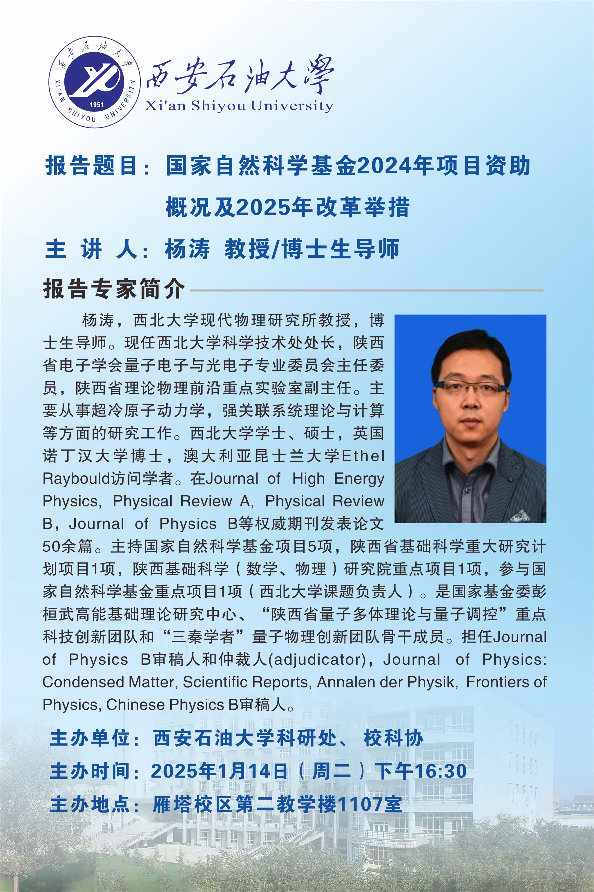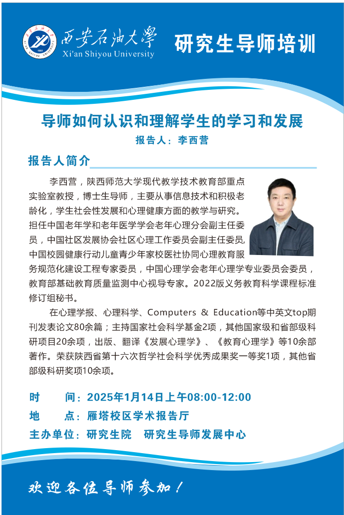 報(bào)告地點(diǎn):雁塔校區(qū)學(xué)術(shù)報(bào)告廳
