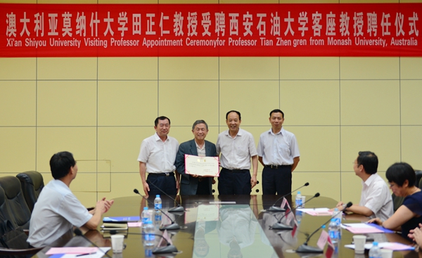6月30日下午,澳大利亞莫納什大學(xué)田正仁教授客座教授聘任儀式暨學(xué)術(shù)交流會在我校會議中心第一會議室舉行。校黨委書記賽云秀、副校長李天太出席聘任儀式。石油工程學(xué)院院長周德勝教授主持儀式。