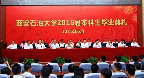 副校長李天太宣讀了《西安石油大學關(guān)于2016屆學生準予畢業(yè)、頒發(fā)畢業(yè)證和授予學士學位的決定》;紀委書記李延平宣讀了《西安石油大學關(guān)于表彰2016屆優(yōu)秀畢業(yè)生的決定》;黨委副書記張木宣讀了《西安石油大學校友總會關(guān)于聘任2016屆校友年級理事的決定》。與會校領(lǐng)導為優(yōu)秀畢業(yè)生代表頒發(fā)了榮譽證書,為年級理事代表頒發(fā)了聘任證書和紀念品,并向全體畢業(yè)生贈送了紀念品。