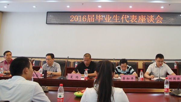 6月27日下午,我校在新校區(qū)圖書館第二會議室召開2016屆畢業(yè)生代表座談會。校黨委副書記雷西合與來自各院系的25名研究生、本科生畢業(yè)生代表進(jìn)行了親切座談。相關(guān)部門負(fù)責(zé)人及畢業(yè)班輔導(dǎo)員代表參加了座談會。