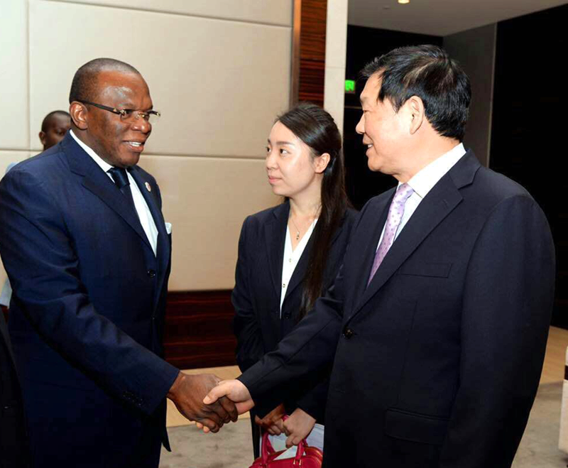 陜西省委書(shū)記婁勤儉與幾內(nèi)亞總統(tǒng)府國(guó)務(wù)部長(zhǎng)兼總統(tǒng)投資事務(wù)顧問(wèn)易卜拉欣瑪?卡索里?弗法納親切握手