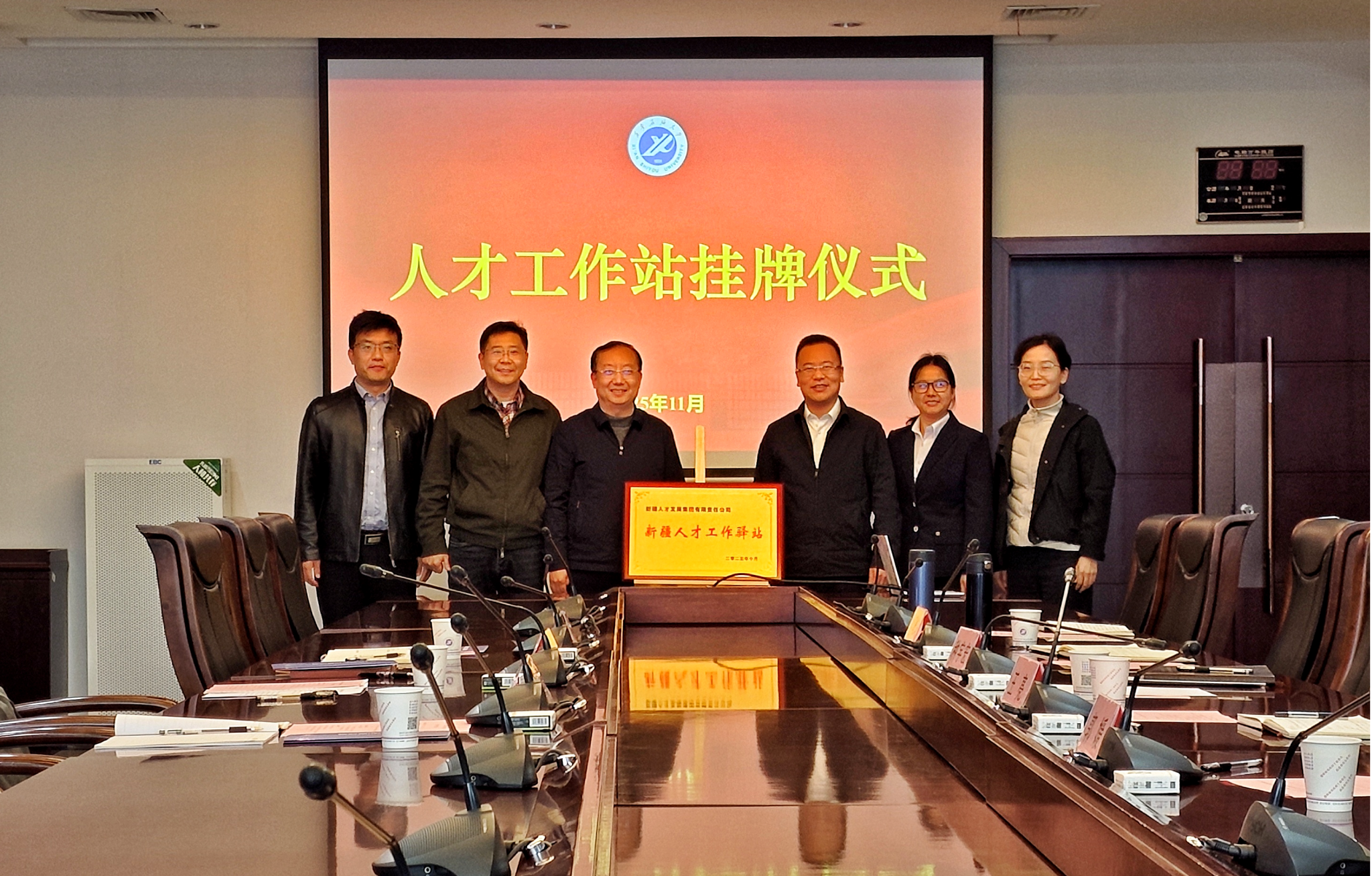 座談會(huì)后,王彥斐代表新疆人才創(chuàng)新科技有限公司,向我校授予“新疆人才工作驛站”牌,標(biāo)志著校企雙方的合作正式邁入常態(tài)化、實(shí)質(zhì)性推進(jìn)階段。
