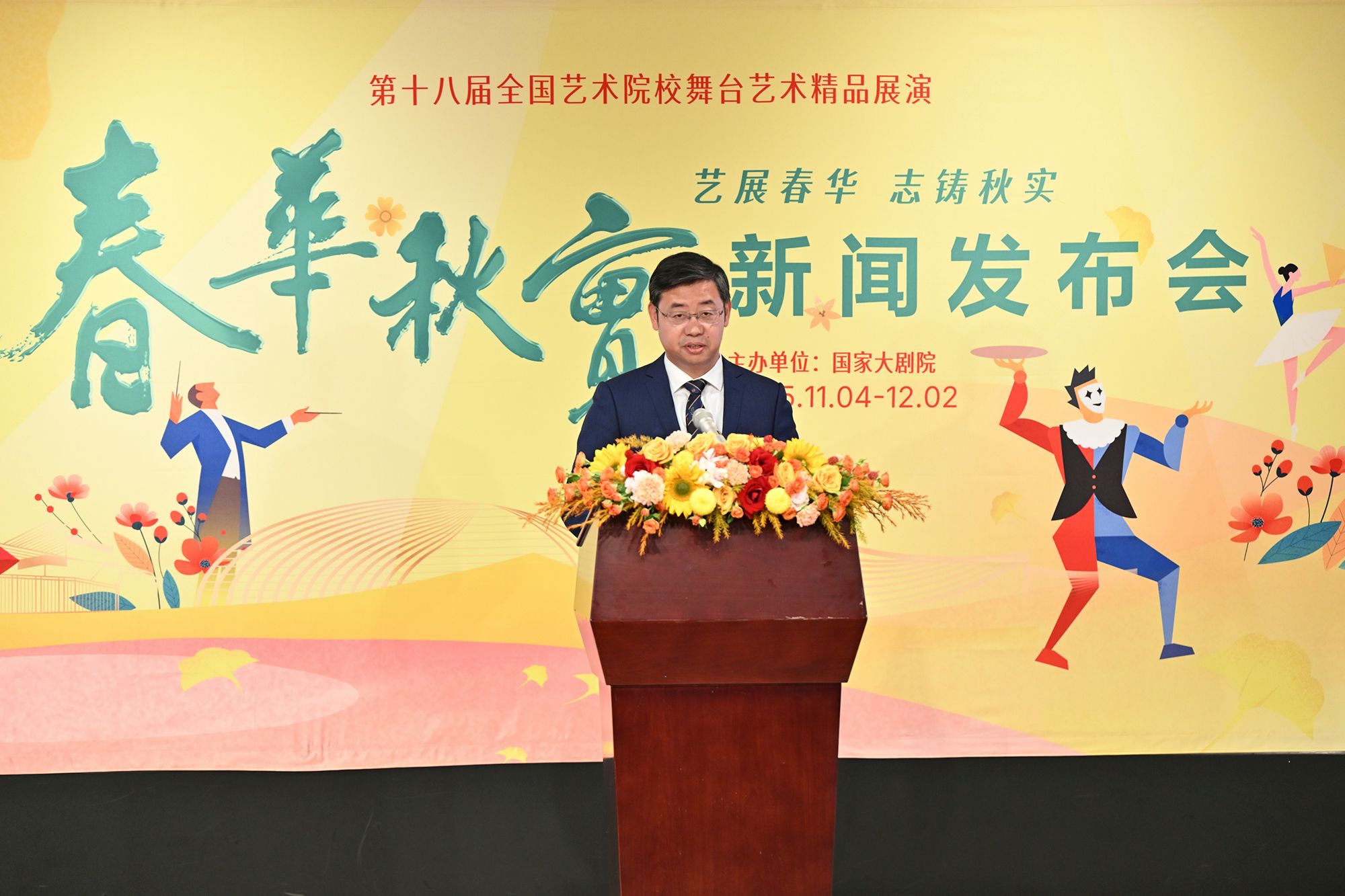 11月4日,國家大劇院第十八屆“春華秋實”全國藝術(shù)院校舞臺藝術(shù)精品展演新聞發(fā)布會成功舉行。國家大劇院黨組書記、院長王寧,教育部體育衛(wèi)生與藝術(shù)教育司副司長楊大研,文化和旅游部科技教育司副司長劉冬妍,中國科協(xié)宣傳文化部副部長李芳等領(lǐng)導(dǎo)出席,中央戲劇學(xué)院、上海戲劇學(xué)院、西安石油大學(xué)等參演院校負(fù)責(zé)人共同參加,新聞發(fā)布會由國家大劇院黨組成員、副院長王斑主持。校長王進(jìn)富作為非藝術(shù)類院校代表受邀出席并作主旨發(fā)言。