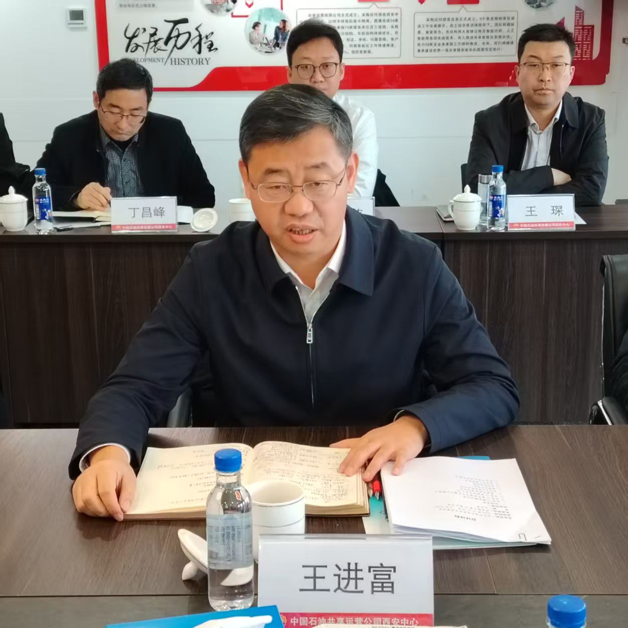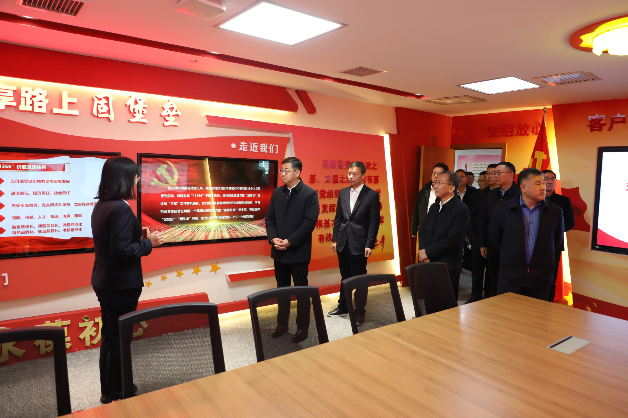 會前,王進富一行參觀了西安中心黨建活動室、共享建設(shè)文化墻以及數(shù)字化員工區(qū)。