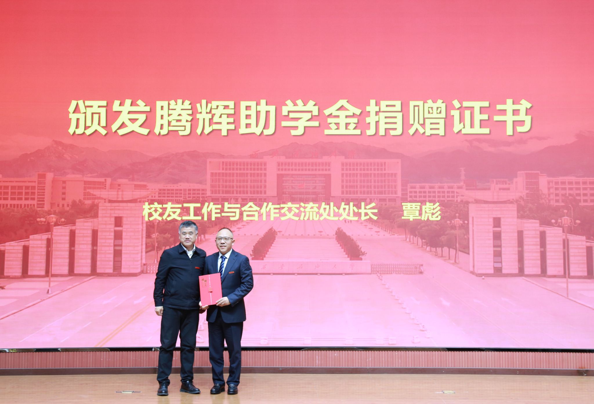 11月26日下午,騰輝助學(xué)金設(shè)立二十周年慶典暨2025年騰輝助學(xué)金發(fā)放儀式在鄠邑校區(qū)弘石學(xué)術(shù)報(bào)告廳舉行。校黨委副書記張木,騰輝助學(xué)金主要出資人、西安騰輝電氣有限公司總經(jīng)理、我校校友何榮,學(xué)生工作處、校友工作與合作交流處、團(tuán)委、機(jī)械工程學(xué)院負(fù)責(zé)人,西安騰輝電氣有限公司員工代表,往屆受助優(yōu)秀校友代表康琦、張凱鋒、寧世潔,2025年受助學(xué)生及各院系師生代表共400余人齊聚一堂,共憶育人初心,共話成長擔(dān)當(dāng),慶典由副校長種宇宏主持。