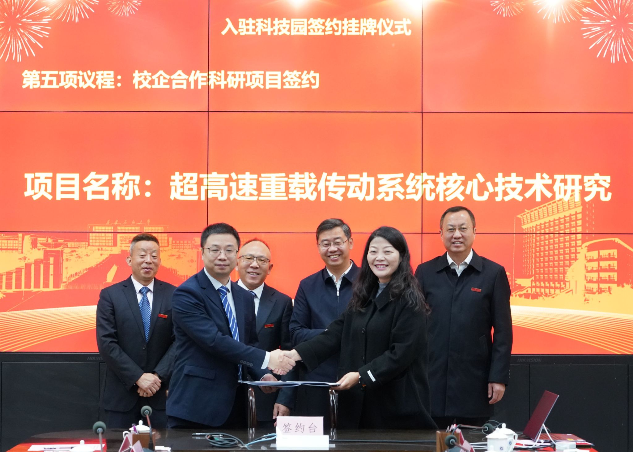 機械工程學院黨委書記孟開元代表學院發(fā)言,機械工程學院副院長崔璐、智展公司副總工程師江師露進行“超高速重載傳動系統(tǒng)核心技術研究”校企合作科研項目簽約。