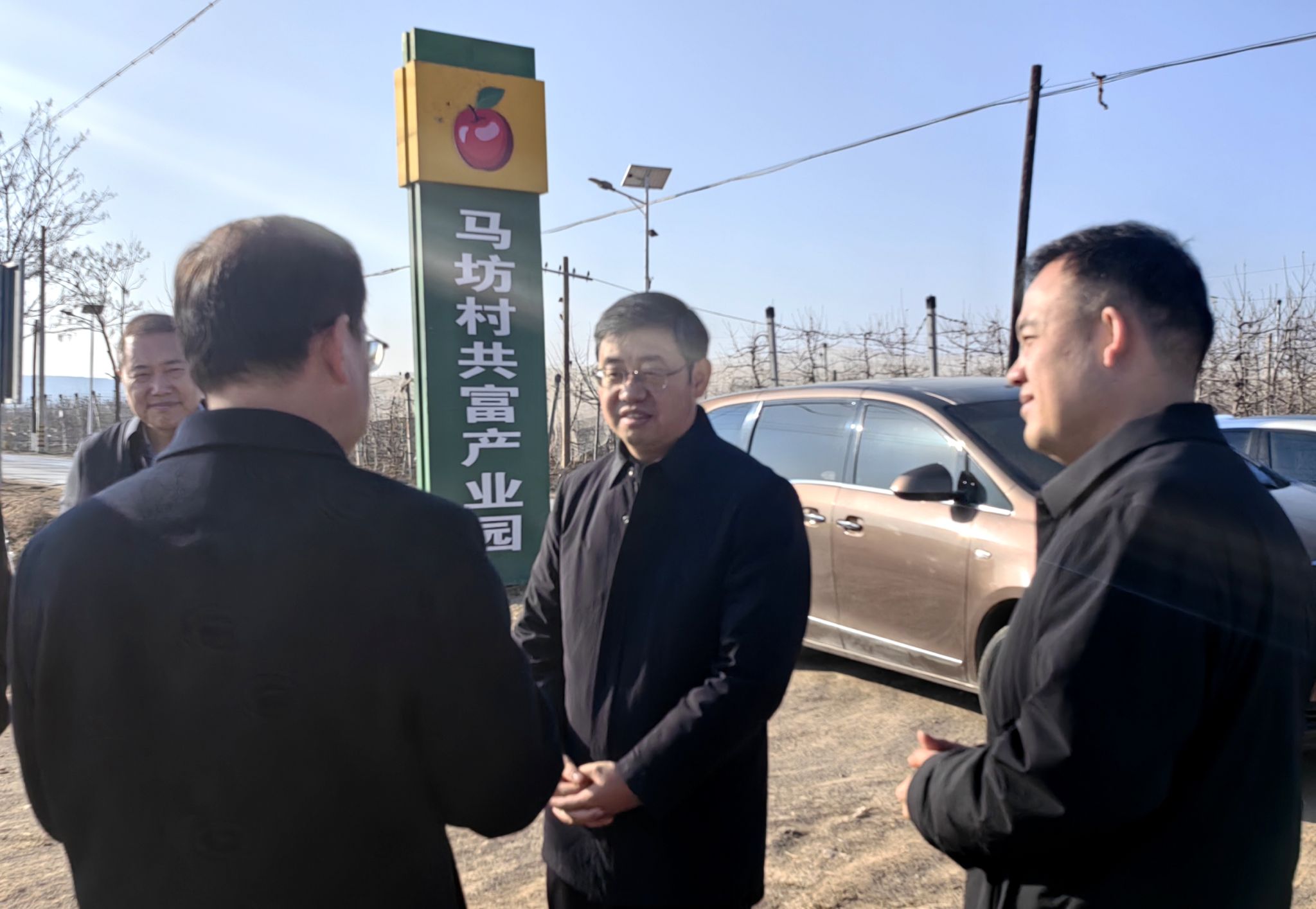 王進(jìn)富一行首先到馬坊鎮(zhèn)馬坊村進(jìn)行了走訪調(diào)研,馬坊鎮(zhèn)鎮(zhèn)長劉翔向王進(jìn)富詳細(xì)介紹了馬坊鎮(zhèn)的基本情況以及近幾年在脫貧攻堅(jiān)和鄉(xiāng)村振興方面的做法和取得的成效。隨后在王振的陪同下,王進(jìn)富一行參觀了馬坊村蘋果共富產(chǎn)業(yè)園,詳細(xì)聽取了相關(guān)負(fù)責(zé)人的產(chǎn)業(yè)介紹,并與縣、鎮(zhèn)、村干部進(jìn)行了深入交流。