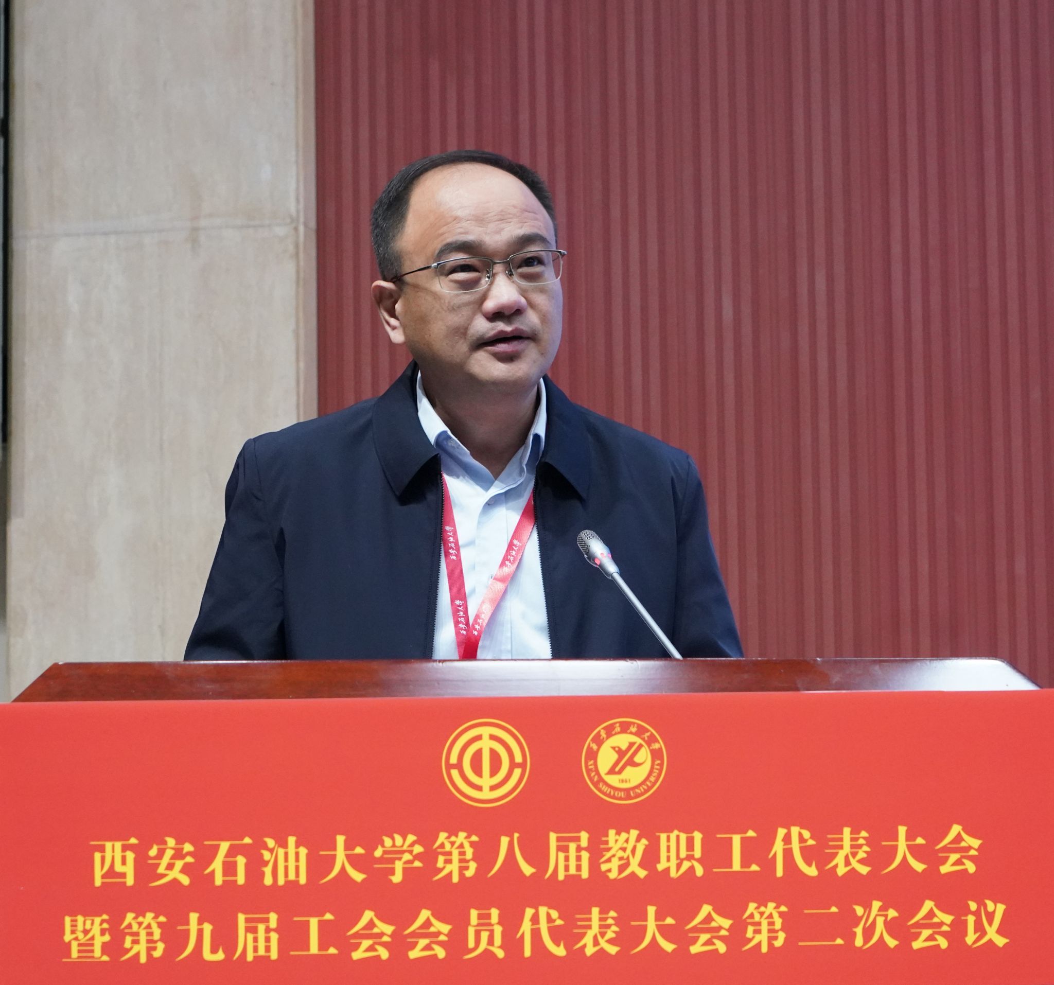 校長王進富作了《與歲功同輝以啟程,攜新程共遠而擘畫——年度報告暨“十五五”規(guī)劃思考》的工作報告,他指出,本次教代會是在學?!笆奈濉睕_刺收官的決勝之年,也是“十五五”謀篇布局的起勢之年召開的一次重要會議,更是全面深化教育科技人才一體改革促進高質(zhì)量發(fā)展的一次會議。報告從建設“三個西石大”的目標出發(fā),全面回顧總結了2025年我校所取得的成就,并指出2025年全校上下緊扣 “學科達標年、人才提升年、改革創(chuàng)新年” 主線,扎實推進 “六大行動”,各項事業(yè)呈現(xiàn)出穩(wěn)中有進、持續(xù)向好的發(fā)展態(tài)勢。特別是2024年以來,全校爭做行動派、跑出加速度,在學科突破、科創(chuàng)增長、人才匯聚等方面實現(xiàn)多項新突破,為 2026 年發(fā)展積累了寶貴經(jīng)驗、奠定了堅實基礎。報告精準分析當前發(fā)展形勢,對照教育強國建設要求、行業(yè)轉型發(fā)展需要、師生校友殷切期盼,科學部署2026 年及今后一個時期的重點任務,為學校朝著特色鮮明的高水平教學研究型大學目標邁進凝聚起磅礴力量。