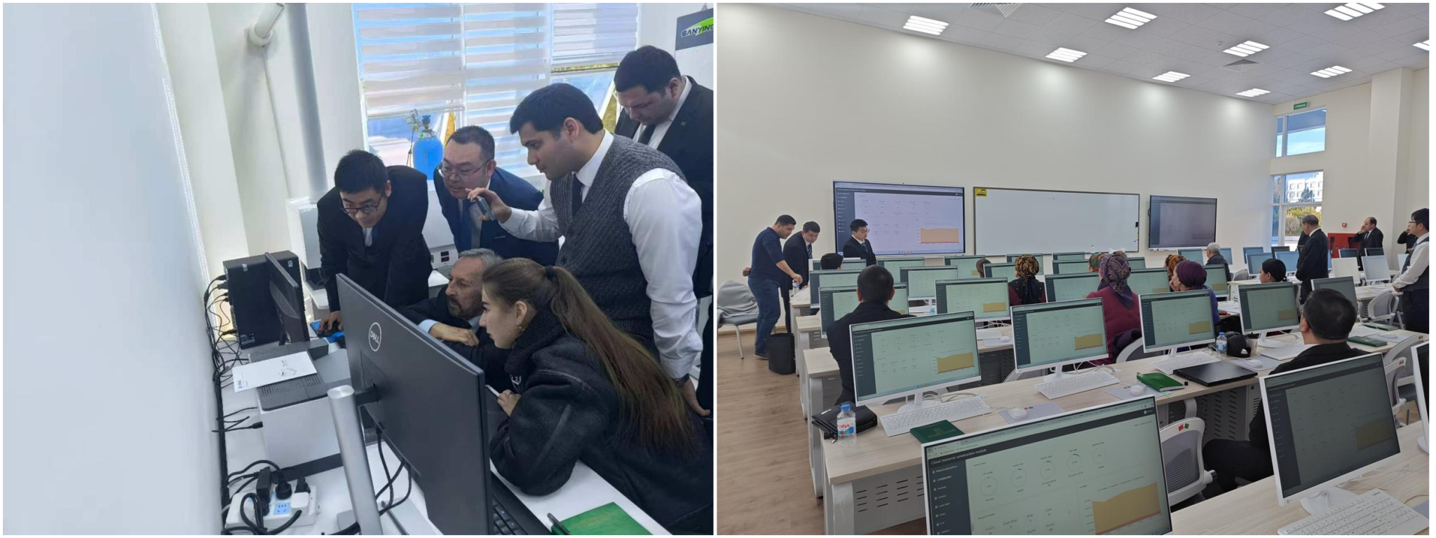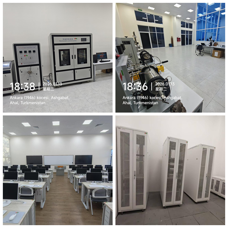 此次中方赴土工作團(tuán)組共計17人,分三批于2025年12月27日、2026年1月6日及1月11日陸續(xù)抵達(dá)卡卡耶夫國際油氣大學(xué),歷經(jīng)19天高效推進(jìn)施工驗收工作。中方技術(shù)團(tuán)隊?wèi){借扎實的專業(yè)功底,順利完成2間地質(zhì)實驗室、4間信息技術(shù)實訓(xùn)室的設(shè)施設(shè)備安裝、調(diào)試及測試運營,所有設(shè)備均實現(xiàn)正常運行,達(dá)到預(yù)設(shè)教學(xué)實驗實訓(xùn)標(biāo)準(zhǔn),為后續(xù)教學(xué)活動開展提供了可靠的硬件保障。