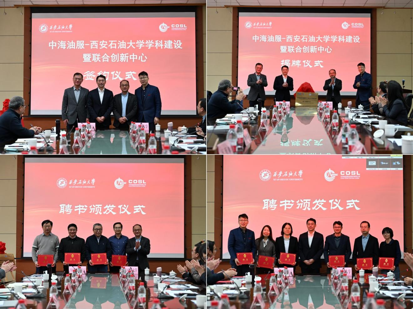 在與會(huì)人員的共同見證下,雙方代表正式簽署合作協(xié)議,并為“定向鉆井控制科學(xué)與技術(shù)學(xué)科建設(shè)基地”與“聯(lián)合創(chuàng)新中心”揭牌。儀式上還宣讀了學(xué)科委員會(huì)名單,趙健、尚捷向委員代表頒發(fā)聘書。