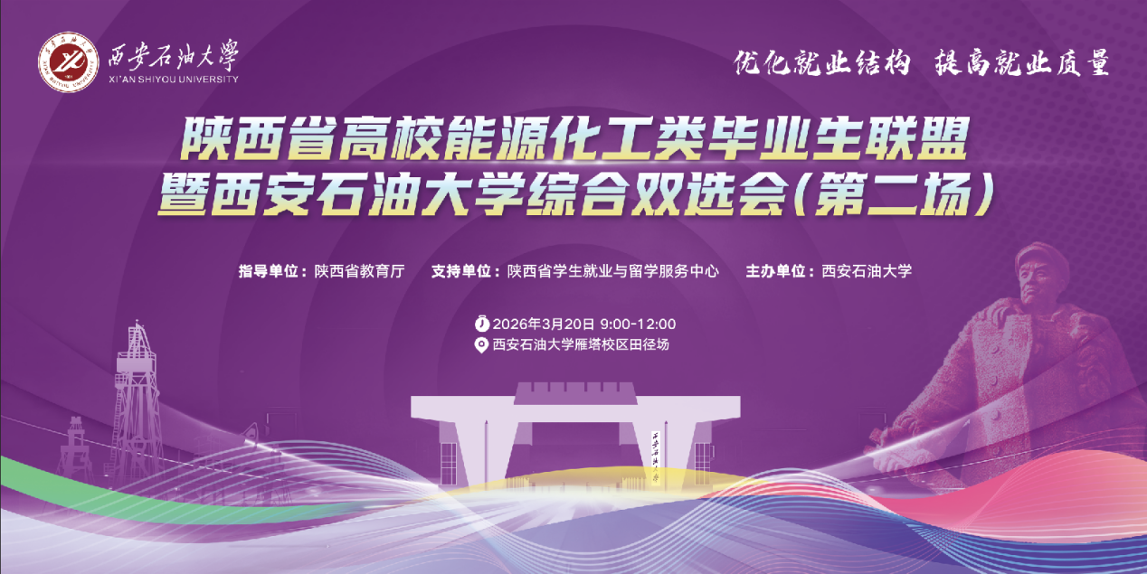 為深入貫徹黨中央、國(guó)務(wù)院及陜西省關(guān)于高校畢業(yè)生就業(yè)工作部署,搶抓春季招聘黃金期,扎實(shí)推進(jìn)2026屆畢業(yè)生高質(zhì)量充分就業(yè),3月20日,陜西省高校能源化工類(lèi)聯(lián)盟招聘會(huì)暨西安石油大學(xué)2026屆春季校園系列第二場(chǎng)綜合雙選會(huì)在我校雁塔校區(qū)田徑場(chǎng)順利舉辦。