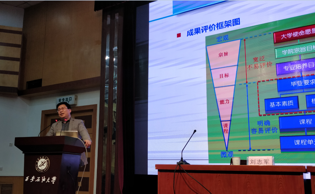 報告會上,劉志軍教授介紹了成果導(dǎo)向教育(Outcome based education,簡稱OBE)的深刻含義,詳細(xì)闡述了如何制定OBE理念的專業(yè)培養(yǎng)方案,內(nèi)容包括培養(yǎng)目標(biāo)、畢業(yè)要求、成果評價、課程大綱的撰寫方法。劉教授的報告應(yīng)用數(shù)據(jù)、圖表等多種表達(dá)形式重點(diǎn)分析了學(xué)科、專業(yè)、課程之間的內(nèi)在關(guān)系和建設(shè)內(nèi)涵,并結(jié)合國內(nèi)外著名高校本科專業(yè)培養(yǎng)方案案例,闡述在成果導(dǎo)向教育理念下,本科專業(yè)人才體系的構(gòu)建和培養(yǎng)方案的制定要求。