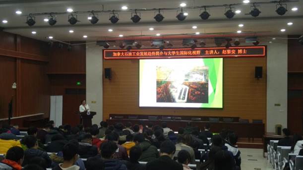 趙黎安博士首先從加拿大阿爾貝塔省的能源情況出發(fā),簡要介紹了CEPro公司的發(fā)展歷程及合作伙伴,并通過石油行業(yè)最著名的三個數(shù)據(jù)庫讓大家認識到了數(shù)據(jù)共享帶來的優(yōu)勢。緊接著趙博士從土壤恢復技術,提高天然氣采收率以及油氣資產(chǎn)的規(guī)程標準三個方面重點介紹了CEPro公司的主要業(yè)務,給我們展示了公司廣闊的發(fā)展前景以及良好的合作愿望。最后趙博士從公司雇主的角度出發(fā),提出了大學生具有創(chuàng)造性、領導力、合作性和團隊協(xié)作精神的重要性,并鼓勵學生都要做一個富有激情、和善誠信、專業(yè)敬業(yè)和善于學習的人。報告會結(jié)束后,趙黎安博士與現(xiàn)場師生進行互動,并耐心回答了同學們提出的問題。整場報告在同學們的熱烈掌聲中結(jié)束。