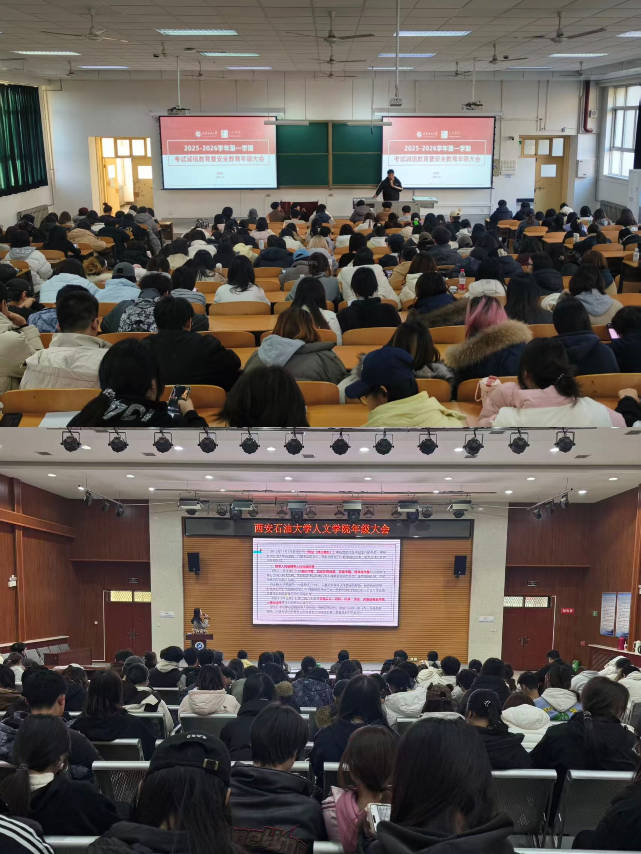 為持續(xù)強(qiáng)化學(xué)風(fēng)建設(shè),引導(dǎo)學(xué)生端正學(xué)習(xí)態(tài)度,誠(chéng)信應(yīng)考,全面增強(qiáng)學(xué)生安全防范意識(shí),營(yíng)造平安、穩(wěn)定、和諧的校園環(huán)境。12月10日至11日,人文學(xué)院2023級(jí)、2024級(jí)分別在鄠邑校區(qū)博覽樓A234、崇文樓118組織召開(kāi)了考風(fēng)考紀(jì)暨安全教育年級(jí)大會(huì),2023級(jí)、2024級(jí)全體本科生參會(huì),會(huì)議由各年級(jí)輔導(dǎo)員主持。