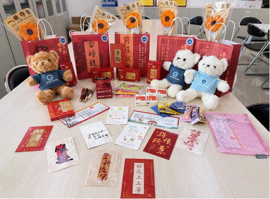 會(huì)后,學(xué)院領(lǐng)導(dǎo)老師們?yōu)橥瑢W(xué)們發(fā)放了精心準(zhǔn)備的“逢考必過”考研慰問大禮包。禮包內(nèi)含印有學(xué)院院徽的文具套裝、暖寶寶、旺仔棒棒糖、紙巾、向日葵以及貼有“馬到橙功”祝福語的橙子等暖心物品,寓意心想事“橙”、一路長(zhǎng)“旺”、“紙”定高分、一舉奪“葵”,承載著全院師生對(duì)考研學(xué)子的殷切期望與美好祝愿。收到禮包的同學(xué)們紛紛表示,這份心意讓他們深切感受到來自學(xué)院的溫暖與支持,也更加堅(jiān)定了沖刺的信心。