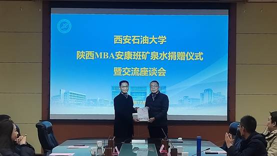 2025年12月14日下午,西安石油大學陜西MBA安康班礦泉水捐贈儀式暨交流座談會在雁塔校區(qū)會議中心隆重舉行。經濟管理學院黨委書記張凌寒、院長吳勛等領導班子成員,陜西MBA安康班班主任趙倩、學員代表安康市漢濱區(qū)委組織部部長向成城及班委共同出席活動。儀式由經濟管理學院副院長李春霄主持。