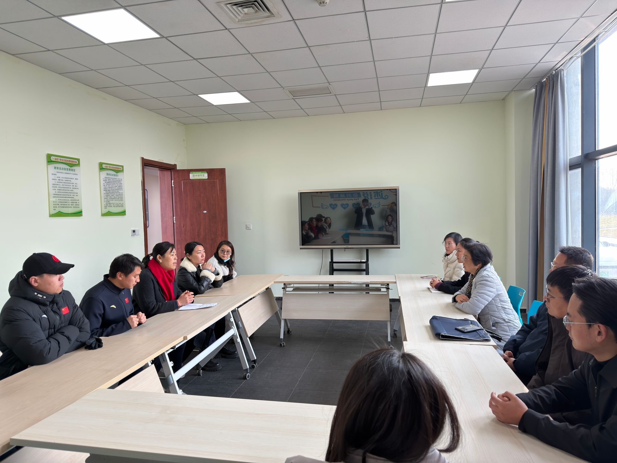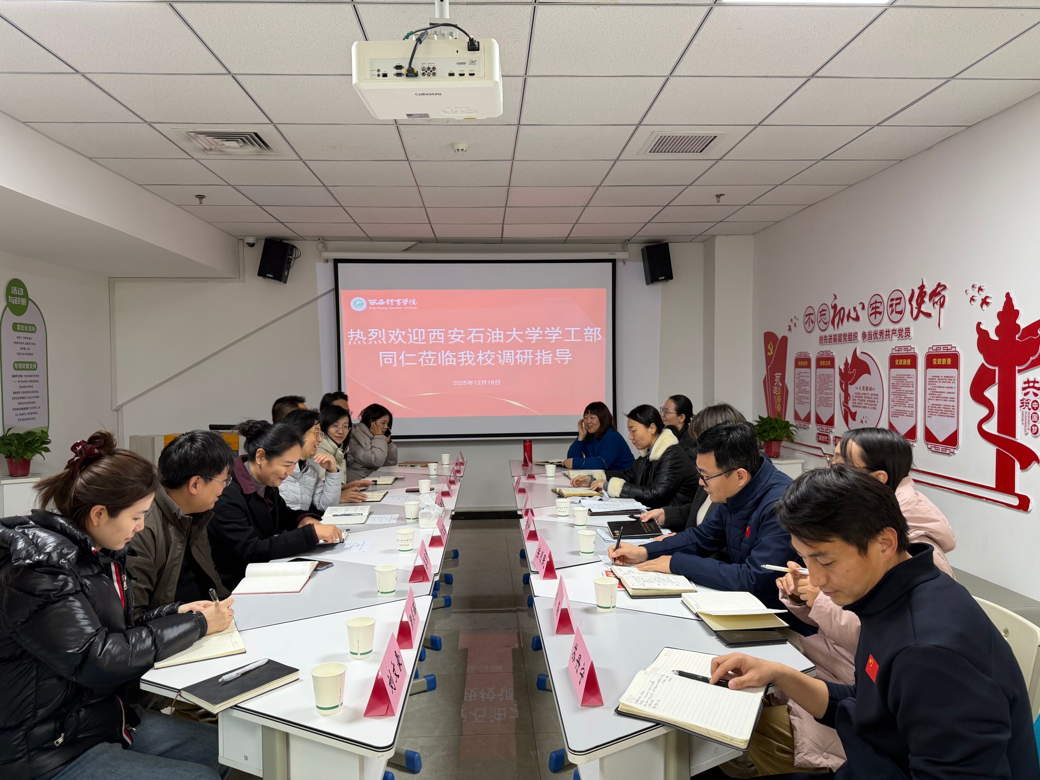 為學(xué)習(xí)借鑒“一站式”學(xué)生社區(qū)綜合管理模式建設(shè)的先進經(jīng)驗,進一步提升我校學(xué)生教育管理服務(wù)水平,12月18日下午2時,我校赴西安體育學(xué)院鄠邑校區(qū)開展專題走訪交流。本次交流由學(xué)生工作部副部長畢軼慧帶隊,體育學(xué)院黨總支書記劉小波、學(xué)生心理成長指導(dǎo)中心主任焦文潔及部分院系學(xué)工干部一同參加。