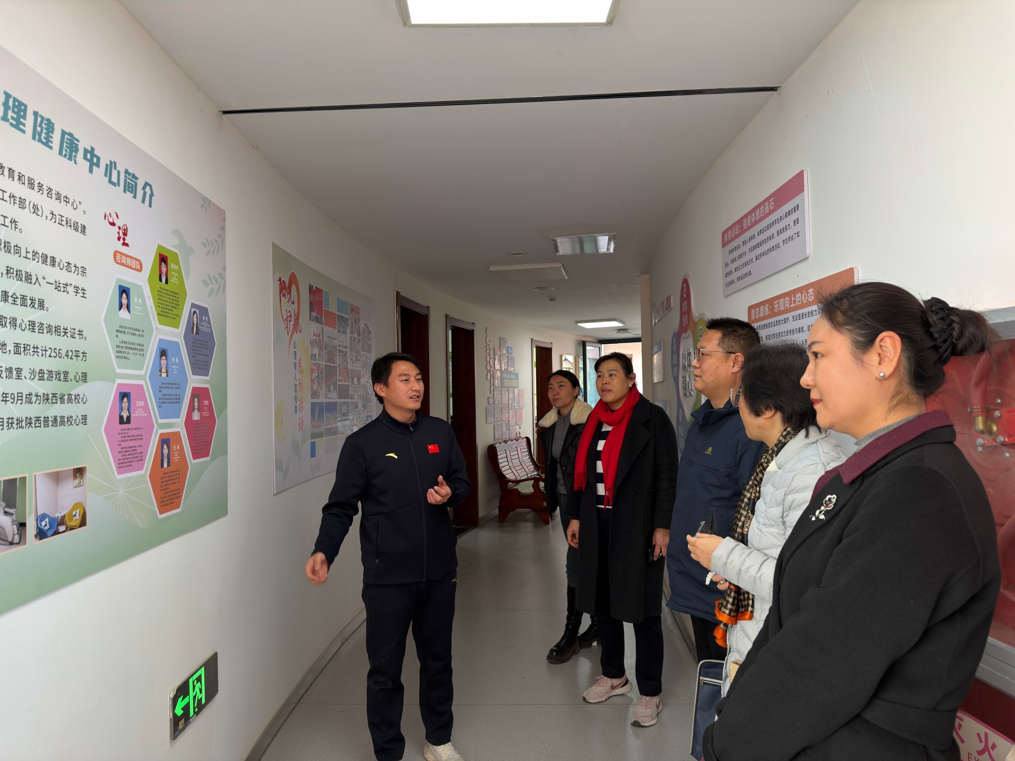在西安體育學(xué)院學(xué)工同仁的陪同下,我校一行首先參觀了“一站式”學(xué)生社區(qū)心理健康教育中心。中心功能齊全、環(huán)境溫馨,將心理健康教育、咨詢干預(yù)、團體活動、放松減壓有機融合于學(xué)生生活區(qū)域,實現(xiàn)了心理育人工作的前置與下沉。