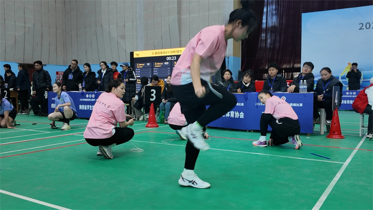 本次賽成功舉辦,依賴于嚴謹周密的組織保障團隊。主辦方嚴格遴選裁判團隊,賽前經(jīng)系統(tǒng)培訓(xùn)與考核認證,執(zhí)裁時目光如炬、計錄精審,更于間歇反復(fù)磋商尺度,以專業(yè)與公信捍衛(wèi)賽事天平。志愿者團隊盡職盡責(zé),從引導(dǎo)疏通、物資整備到流程銜接無不悉心安排,他們是賽場內(nèi)外最溫情的紐帶。醫(yī)療團隊全程駐守,專業(yè)醫(yī)護與急救物資齊備,為選手安全完賽提供無聲而堅實的守護。西安石油大學(xué)傾力支持,提供一流的場館設(shè)施,更在安保、后勤等方面全面護航,為這場盛會奠定了最可靠的運行基座。我校體育學(xué)院徐小仙老師說:“學(xué)校高度重視本屆賽事的組織與服務(wù),體育學(xué)院始終致力于搭建高水準體育平臺,將跳繩納入大學(xué)體育課程,推動這項運動在校園中的普及與發(fā)展。”