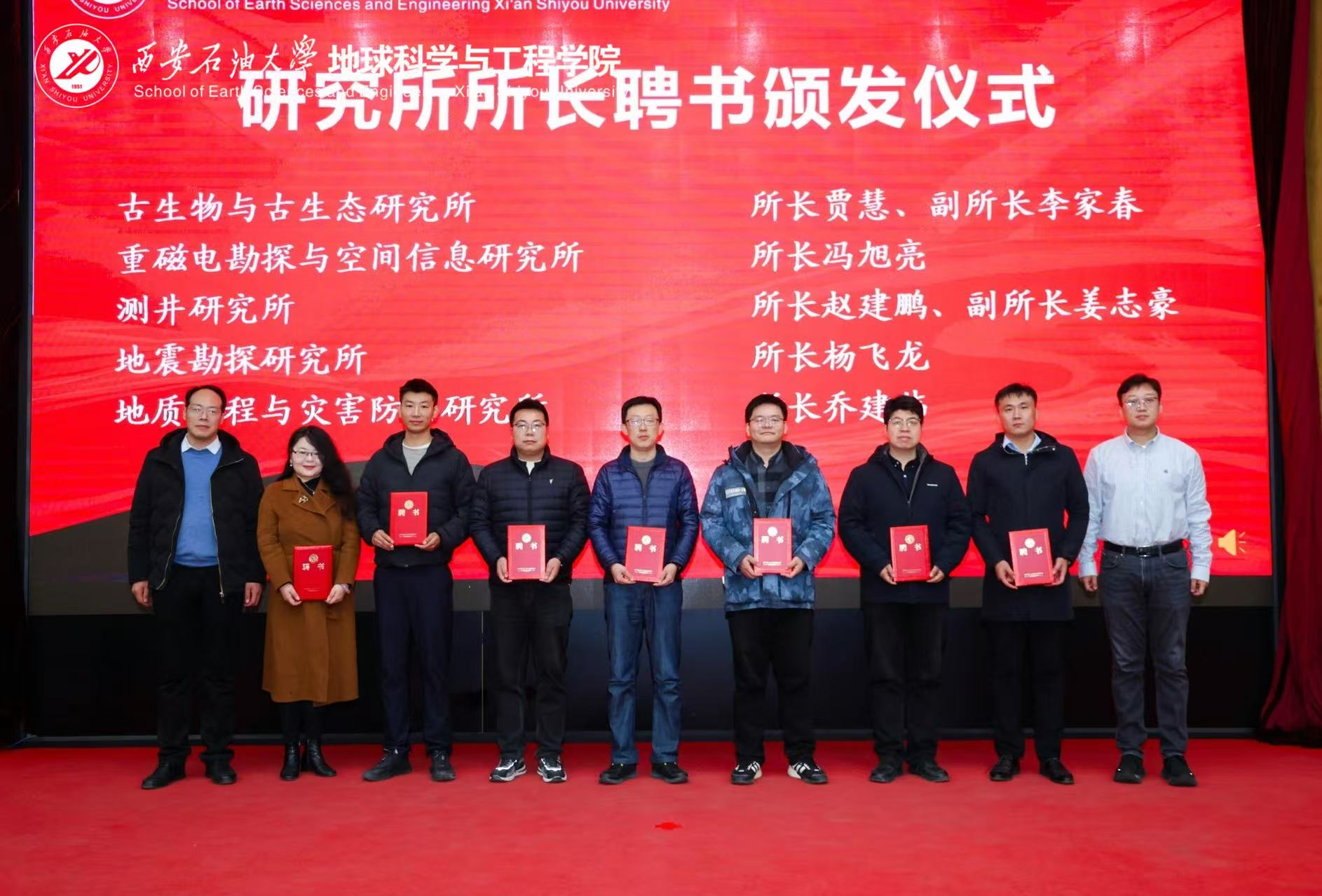 學(xué)院院長宋立軍宣讀了學(xué)院新一屆研究所所長聘任決定,學(xué)院領(lǐng)導(dǎo)分批為新組建的油氣地質(zhì)研究所、沉積與古地理研究所等11個研究所的15位新任所長頒發(fā)了聘書。