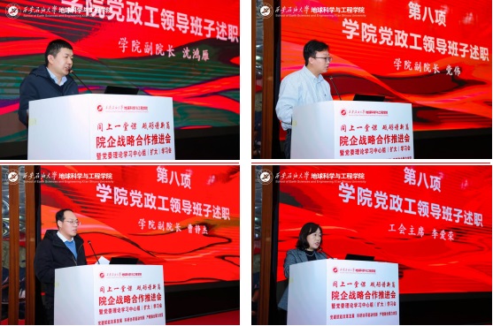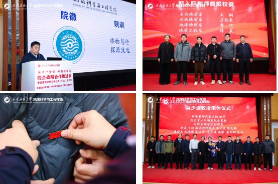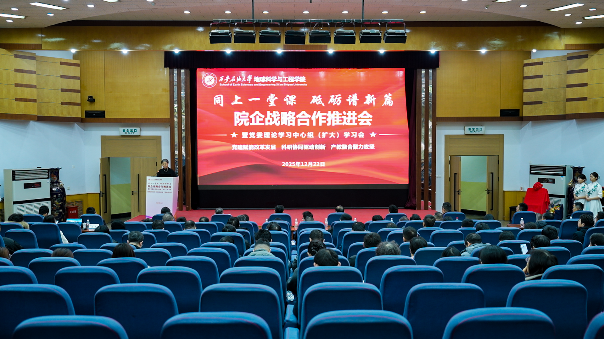 為貫徹落實學(xué)?!叭齻€年”建設(shè)部署,深化“院所制”改革,12月22日,地球科學(xué)與工程學(xué)院“同上一堂課 砥礪譜新篇”院企戰(zhàn)略合作推進會暨黨委理論學(xué)習(xí)中心組(擴大)學(xué)習(xí)會在雁塔校區(qū)舉行。會議以“黨建賦能改革發(fā)展,科研協(xié)同驅(qū)動創(chuàng)新,產(chǎn)教融合聚力攻堅”為主線,通過聯(lián)合研究院揭牌、前沿學(xué)術(shù)報告、專題思政課與學(xué)院內(nèi)部建設(shè)系列議程,匯聚發(fā)展共識,擘畫未來藍(lán)圖。校長王進富,長慶油田首席技術(shù)專家喻健,西安石文軟件有限公司董事長、總經(jīng)理張小會,副總經(jīng)理楊靜波,校友工作與合作交流處相關(guān)負(fù)責(zé)人等校企嘉賓及全院師生代表共同參會。學(xué)院黨委書記高黎主持會議。