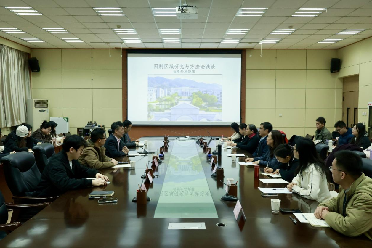 12月23日上午,區(qū)域國別研究院邀請浙江外國語學(xué)院環(huán)地中海研究院院長、我校兼職教授馬曉霖在雁塔校區(qū)會議中心第一會議室作題為“區(qū)域國別學(xué)概述與學(xué)術(shù)研究方法論”的學(xué)術(shù)講座。講座由我校副校長蘇文甫主持。區(qū)域國別學(xué)碩士研究生導(dǎo)師、研究院專兼職研究人員、2025級全體碩士研究生聆聽了報告。