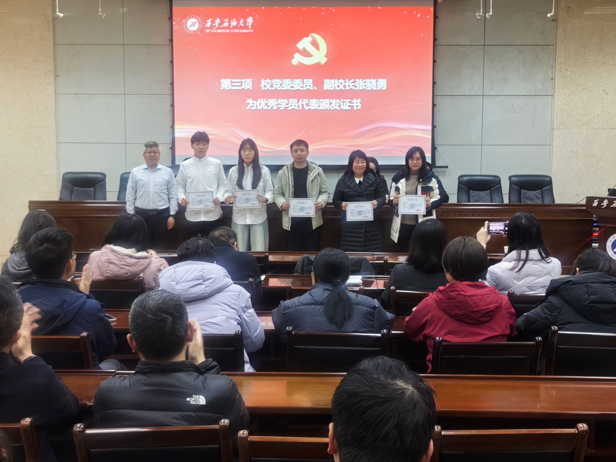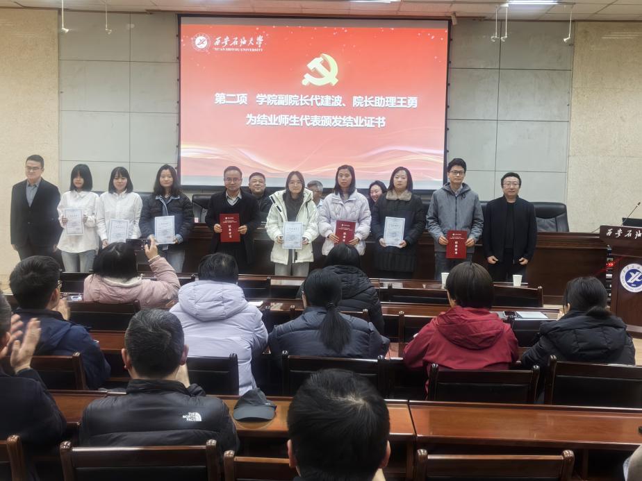 2025年12月24日下午,管道工程學院黨委在雁塔校區(qū)西階第三會議室開展“學黨章鑄忠誠,悟思想強使命”專題學習班第四講暨結(jié)業(yè)儀式。校黨委委員、副校長張驍勇出席并作第四講專題報告,學院班子全體成員、全體教工黨員、研究生黨員代表70人參加儀式。儀式由學院黨委副書記高亮主持。