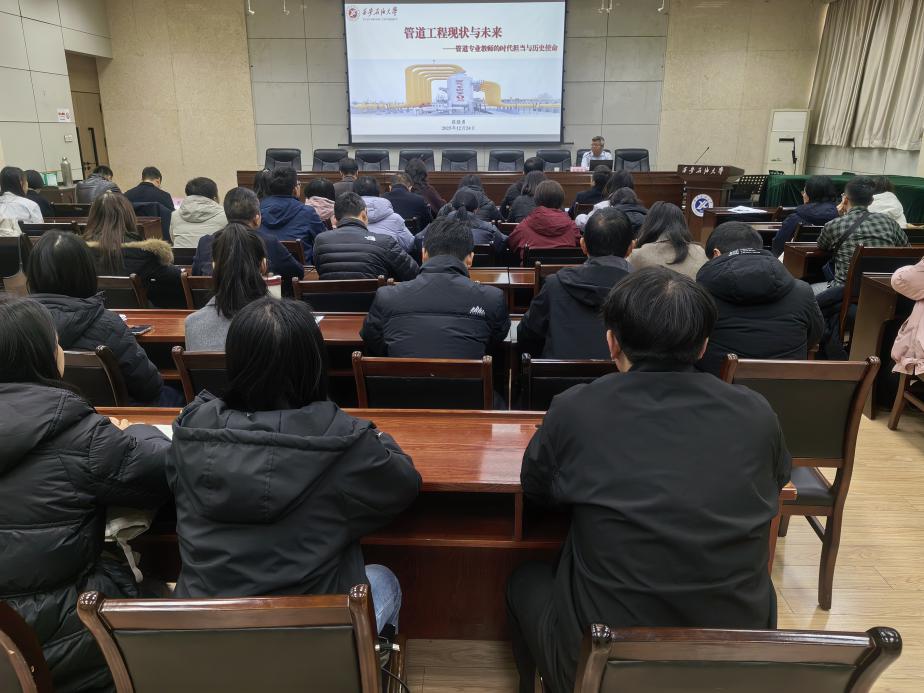 張驍勇以《管道工程現(xiàn)狀與未來——管道專業(yè)教師的時代擔當與歷史使命》為題,從全球能源格局、管道工程發(fā)展歷程、國內(nèi)外管網(wǎng)建設現(xiàn)狀、未來發(fā)展趨勢等方面,系統(tǒng)闡述了管道工程在國家能源安全中的戰(zhàn)略地位。他指出,習近平總書記多次強調(diào)“石油能源建設對我們國家意義重大,中國作為制造業(yè)大國,要發(fā)展實體經(jīng)濟,能源的飯碗必須端在自己手里”,而管道就是能源輸送的“生命線”,是支撐國家綠色低碳轉(zhuǎn)型、實現(xiàn)“雙碳”目標的關鍵基礎設施。他強調(diào),作為管道專業(yè)的教師,要了解全球能源發(fā)展現(xiàn)狀、掌握國內(nèi)外管道工程領域現(xiàn)狀、把握管道工程領域未來發(fā)展趨勢,要以老一輩石油管道人在繼承大慶精神、鐵人精神的基礎上,在“八三”工程會戰(zhàn)中形成的“艱苦創(chuàng)業(yè)、勇于實踐、團結(jié)協(xié)作、無私奉獻” “八三”精神為指引,以“管道為業(yè)、四海為家、艱苦為榮、野戰(zhàn)為樂”的管道優(yōu)良傳統(tǒng)為路徑,主動將個人發(fā)展與國家戰(zhàn)略需求緊密結(jié)合,把課程思政融入專業(yè)教學,把科研方向聚焦國家“卡脖子”難題,努力成為新時代能源事業(yè)的“守脈人”和“筑夢者”。