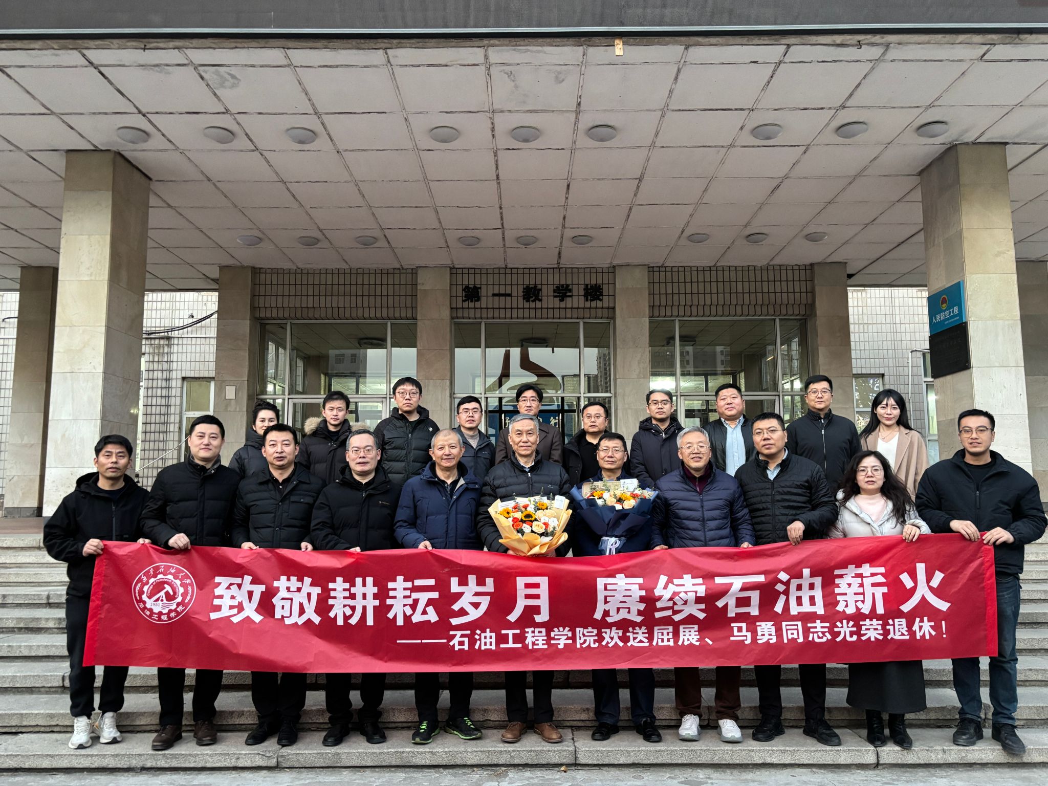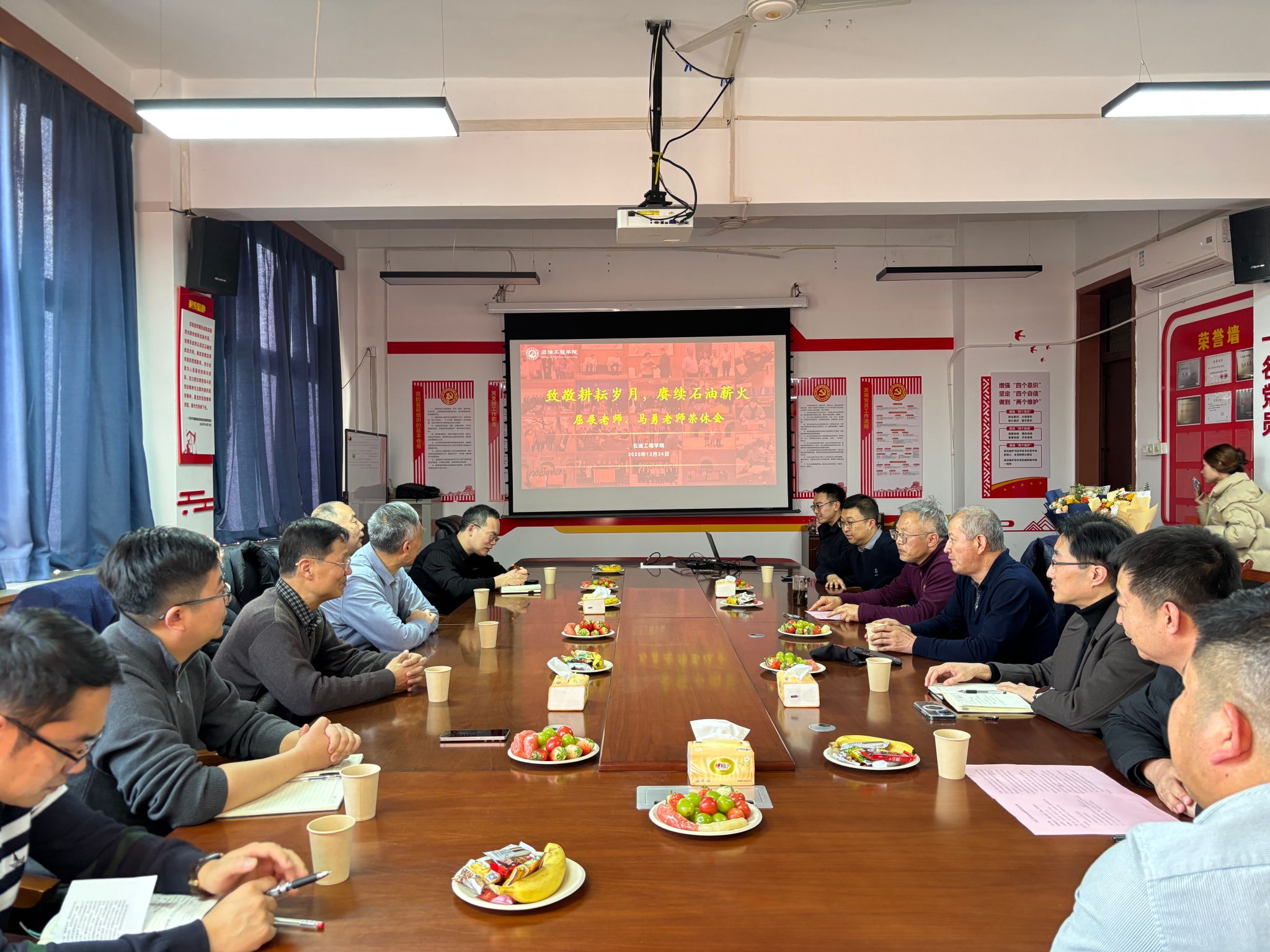 歲月如歌,薪火相傳。12月24日下午,石油工程學院于雁塔校區(qū)第一教學樓603會議室隆重舉行“致敬耕耘歲月,賡續(xù)石油薪火”主題榮休會,深情歡送屈展、馬勇兩位榮退教師。學院班子成員、退休教師代表、兩位老師往屆所帶學生和原任辦公室同事、學院教師代表齊聚一堂,共憶執(zhí)教歲月,共話師恩情誼,共送美好祝福。