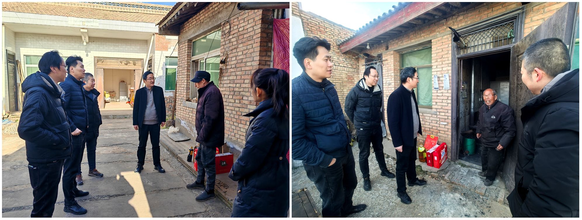 隨后,在掛職和駐村干部的陪同下,丁昌峰一行分別前往學(xué)院結(jié)對幫扶對象肖和平和薛忠孝家中,為他們送上了精心準備的米、油、牛奶、堅果和棉鞋等生活物資,仔細檢查了兩位老人的生活條件與取暖設(shè)施,細致詢問了他們的健康狀況、家庭收入及冬季生活保障等具體情況,叮囑他們注意防寒保暖與用火用電安全。兩位老人對學(xué)院的關(guān)心表達了感謝,并表示會保持積極樂觀的心態(tài),把日子過得越來越好。