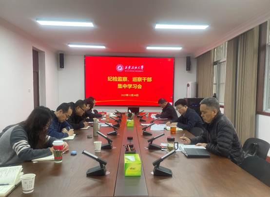 12月30日下午,紀(jì)檢巡察干部2025年第27次集中學(xué)習(xí)會(huì)在鄠邑校區(qū)辦公樓第四會(huì)議室召開(kāi)。校黨委副書(shū)記、紀(jì)委書(shū)記、監(jiān)察專(zhuān)員王輝強(qiáng)主持學(xué)習(xí)會(huì)。紀(jì)檢監(jiān)察機(jī)構(gòu)、黨委巡察工作辦公室全體干部參加會(huì)議。