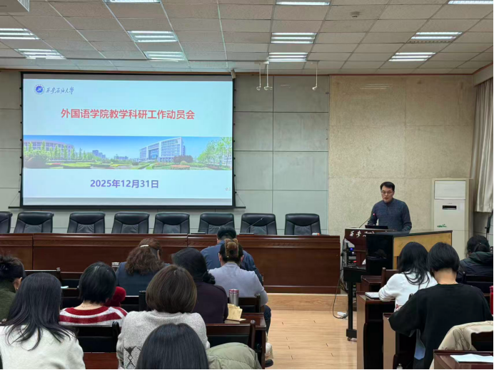 為進(jìn)一步激發(fā)教師隊(duì)伍創(chuàng)新活力,推動(dòng)學(xué)院學(xué)科建設(shè)與科研成果實(shí)現(xiàn)新突破,12月31日下午,外國(guó)語(yǔ)學(xué)院在雁塔校區(qū)第三會(huì)議室召開(kāi)教學(xué)科研工作動(dòng)員會(huì)暨外語(yǔ)學(xué)科向區(qū)域國(guó)別學(xué)科轉(zhuǎn)型報(bào)告會(huì)。學(xué)院領(lǐng)導(dǎo)班子成員、各系部負(fù)責(zé)人及全體教師參加會(huì)議。會(huì)議由學(xué)院黨委書(shū)記張建高主持。