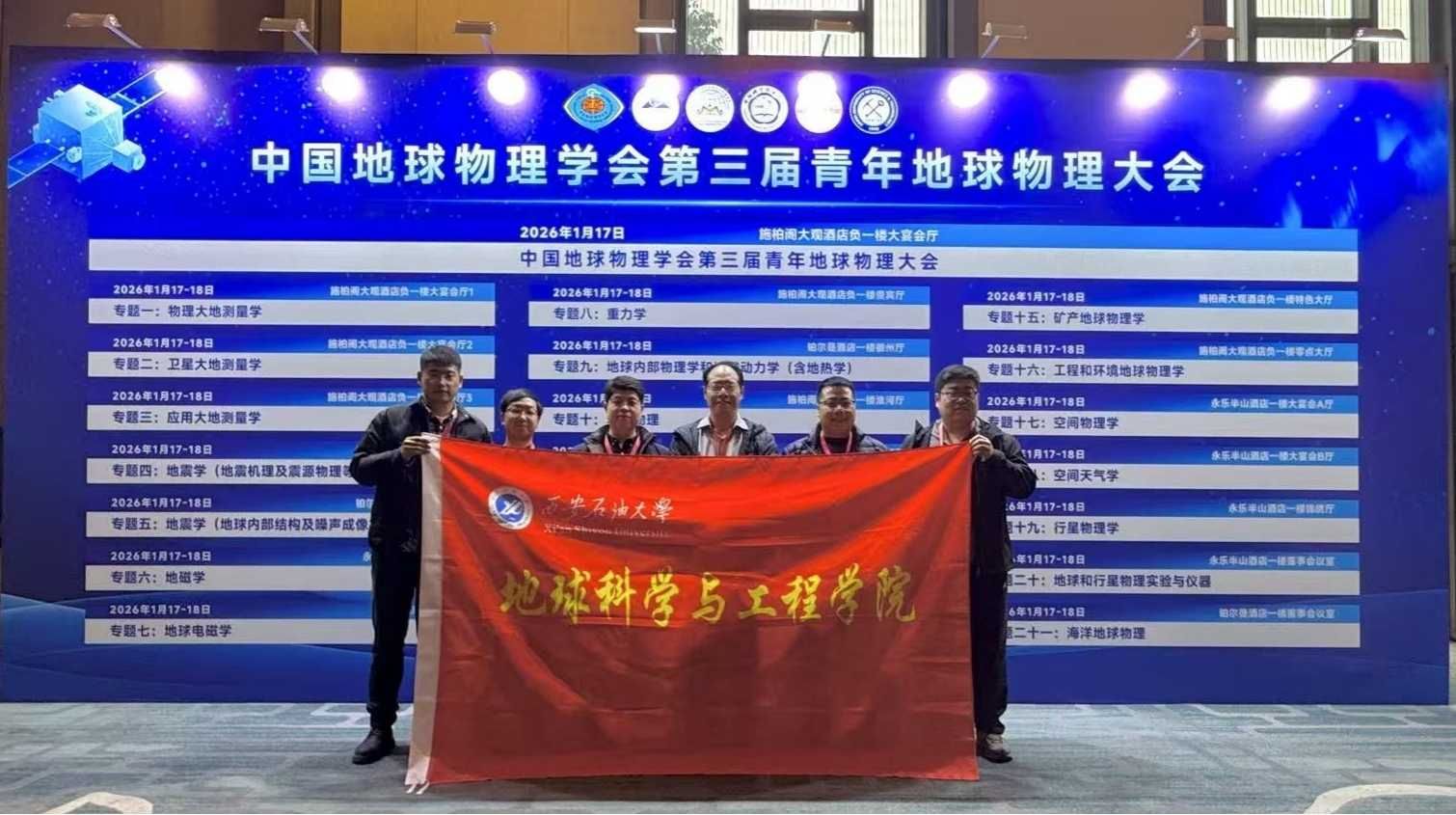2026年1月16日至19日,第三屆青年地球物理大會在安徽合肥隆重舉行,本屆大會吸引了來自全球60多家單位的800多名頂尖專家和青年學者參加。我校地球科學與工程學副院長院曹靜杰教授帶領(lǐng)7位青年教師集體參加了本次大會。曹靜杰教授作為專題召集人組織了第十六專題,應(yīng)用地球物理系青年教師馮旭亮、李萌、楊飛龍、李欣欣、魯愷、楊文強,分別在地球電磁學、重力學、地磁學、工程和環(huán)境地球物理學、油氣測井與儲層評價、地震波場成像方法及技術(shù)、儲層識別與參數(shù)反演等專題作學術(shù)報告7場,展現(xiàn)了我校地球物理領(lǐng)域青年教師在相關(guān)領(lǐng)域的科研進展與風采。