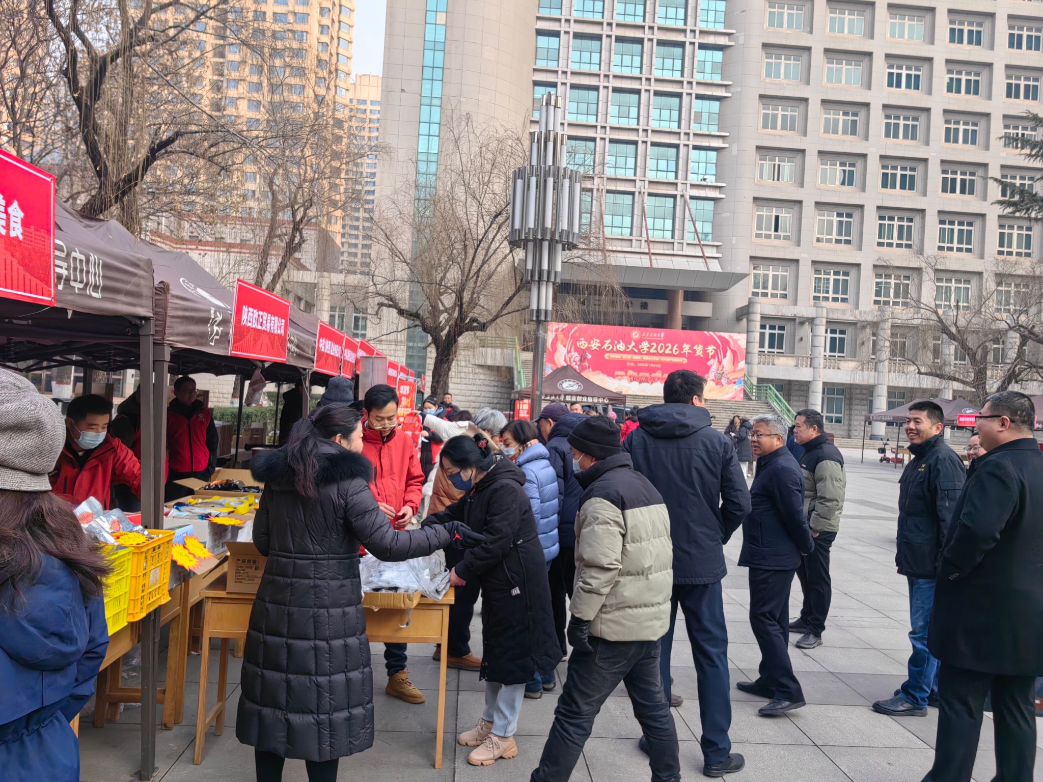 歲末寒意濃,校情暖人心。為深入落實校黨委“以教職工為中心” 的發(fā)展理念,將 “幸福西石大” 建設(shè)要求轉(zhuǎn)化為看得見、摸得著的民生福祉,1 月23日,由校工會、后勤處、離退休工作處、石大資產(chǎn)經(jīng)營公司聯(lián)合承辦的2026 年春節(jié)教職工專屬年貨節(jié)在我校雁塔校區(qū)圓滿舉辦。校黨委副書記程永清,副校長張驍勇、趙健等校領(lǐng)導親臨現(xiàn)場巡展,與教職工親切互動,共品年味、共話發(fā)展。本次活動以“品質(zhì)優(yōu)、價格惠、服務暖、文化濃” 的鮮明特色,成為校黨委心系教職工、服務教職工的生動實踐。