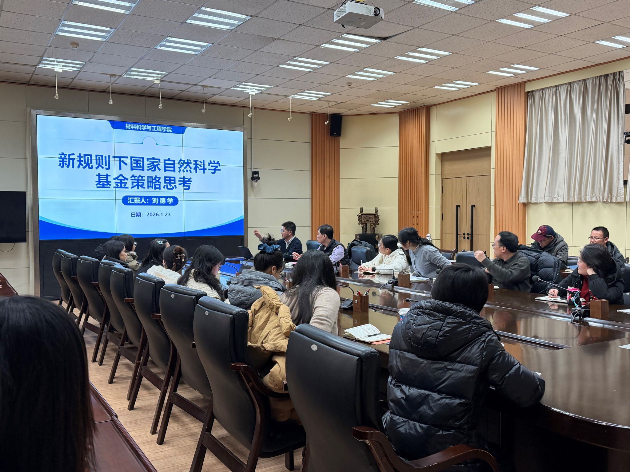 為幫助學院教師精準把握2026年度國家自然科學基金改革核心要義,提升項目申報質量與成功率,2026年1月23日,材料科學與工程學院在雁塔校區(qū)第二會議室召開了“材料科學與工程學院2026年國家自然科學基金申報交流會”。劉德學院長主講,學院青年教師40余人參會交流,會議由朱世東副院長主持。