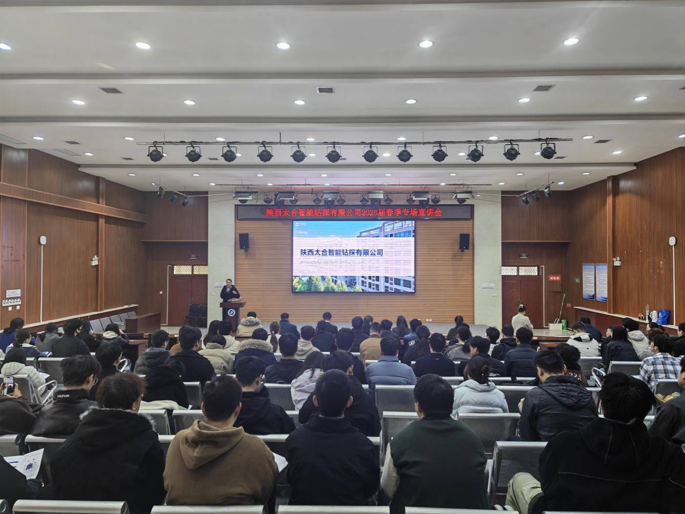 3月10日上午,陜西太合智能鉆探有限公司2026屆畢業(yè)生校園專場招聘會暨人才聯(lián)合培養(yǎng)宣講會在我校鄠邑校區(qū)崇文樓118報告廳順利舉行。陜西太合智能鉆探有限公司相關(guān)負(fù)責(zé)人、技術(shù)專家與招聘團(tuán)隊到場,學(xué)校就業(yè)創(chuàng)業(yè)指導(dǎo)中心、相關(guān)院系學(xué)生工作負(fù)責(zé)人、畢業(yè)班輔導(dǎo)員及280余名畢業(yè)生參加活動。