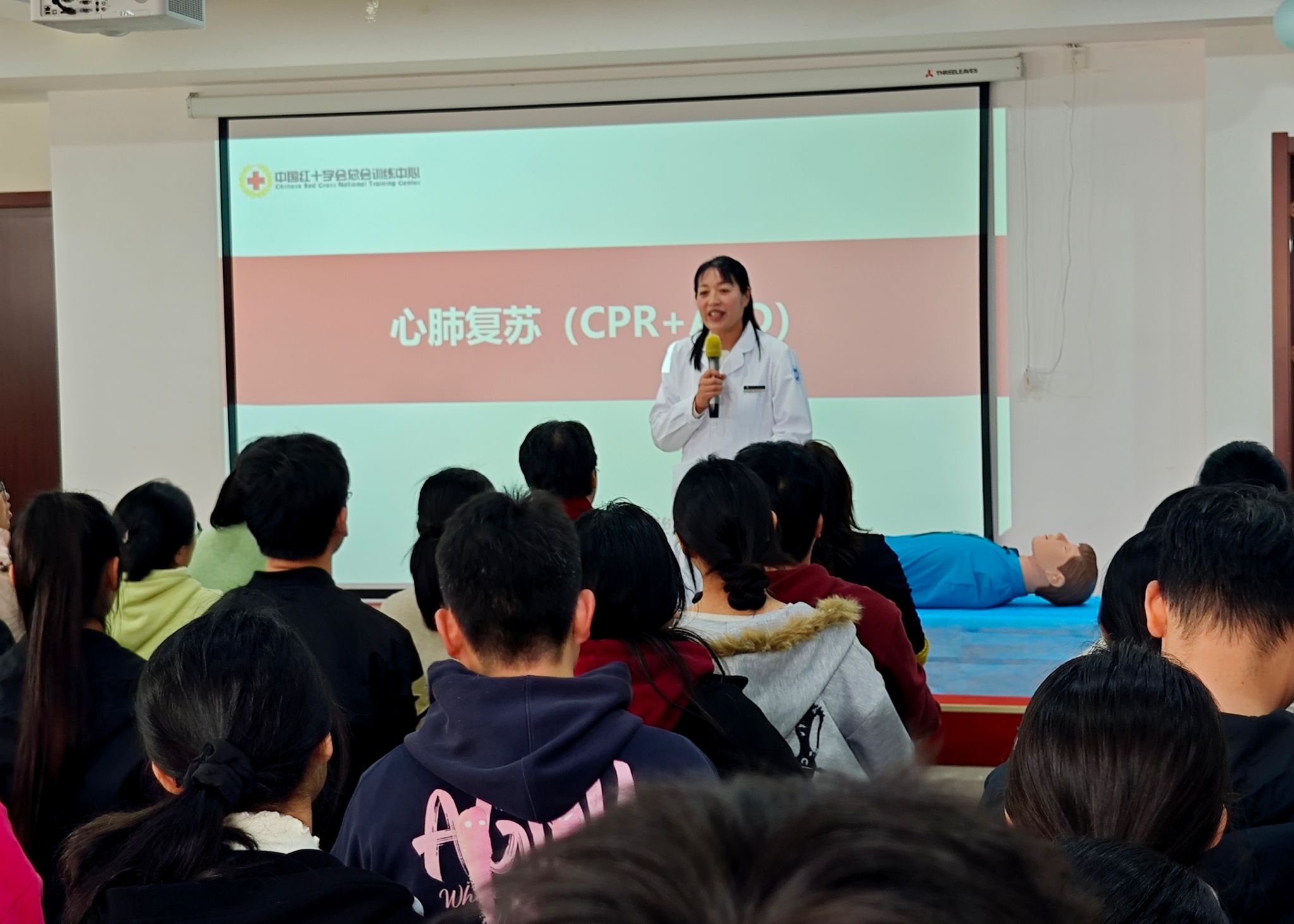 本次培訓由校醫(yī)院講師譚亞主講。她系統(tǒng)講解了心肺復蘇(CPR)操作流程、自動體外除顫器(AED)使用方法、氣道異物梗阻急救(海姆立克急救法)等關鍵內(nèi)容,細致示范按壓位置、深度、頻率等技術要點,逐項拆解AED操作規(guī)范,并通過情景互動強化記憶,幫助參訓師生快速掌握核心救命技能,切實提升應急處置意識與能力。