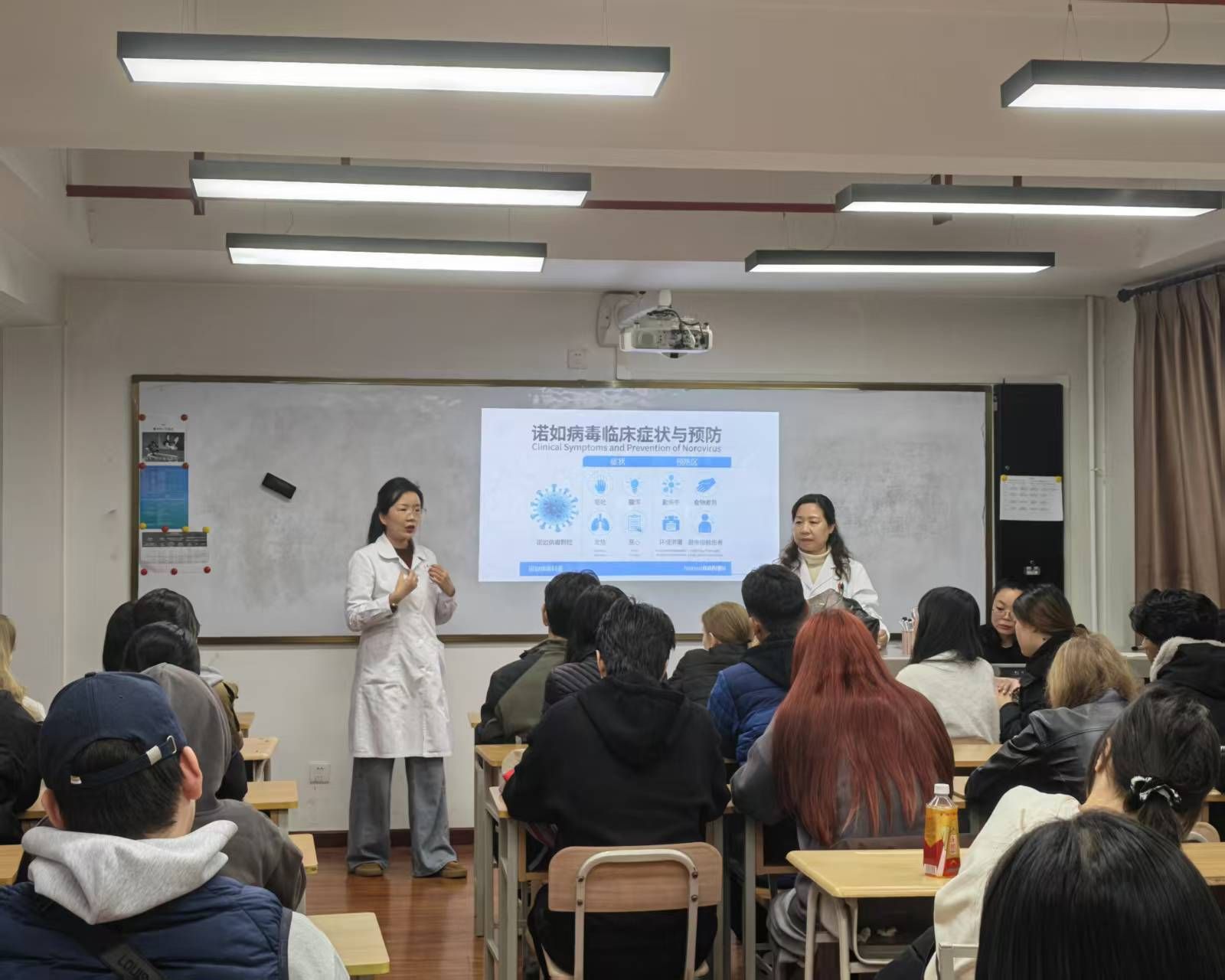 在春季傳染病防控科普宣傳環(huán)節(jié),宣傳活動(dòng)覆蓋三校區(qū)各教學(xué)區(qū)、生活區(qū)及留學(xué)生公寓。醫(yī)護(hù)人員聚焦諾如病毒感染性腹瀉、水痘、流行性感冒等春季高發(fā)傳染病,通過(guò)專題講解、現(xiàn)場(chǎng)演示、互動(dòng)答疑等多種形式,向師生普及各類傳染病的傳播途徑、典型癥狀及科學(xué)防控要點(diǎn)?,F(xiàn)場(chǎng)手把手示范規(guī)范“七步洗手法”,引導(dǎo)師生養(yǎng)成勤開(kāi)窗通風(fēng)、勤洗手、注重飲食衛(wèi)生、保持社交距離等良好衛(wèi)生習(xí)慣。同時(shí),明確傳染病疑似癥狀的上報(bào)流程與處置規(guī)范,重點(diǎn)強(qiáng)調(diào)諾如病毒嘔吐物、排泄物的專業(yè)消殺與規(guī)范處置要求,全面提升師生自我防護(hù)意識(shí)與應(yīng)急處置能力。