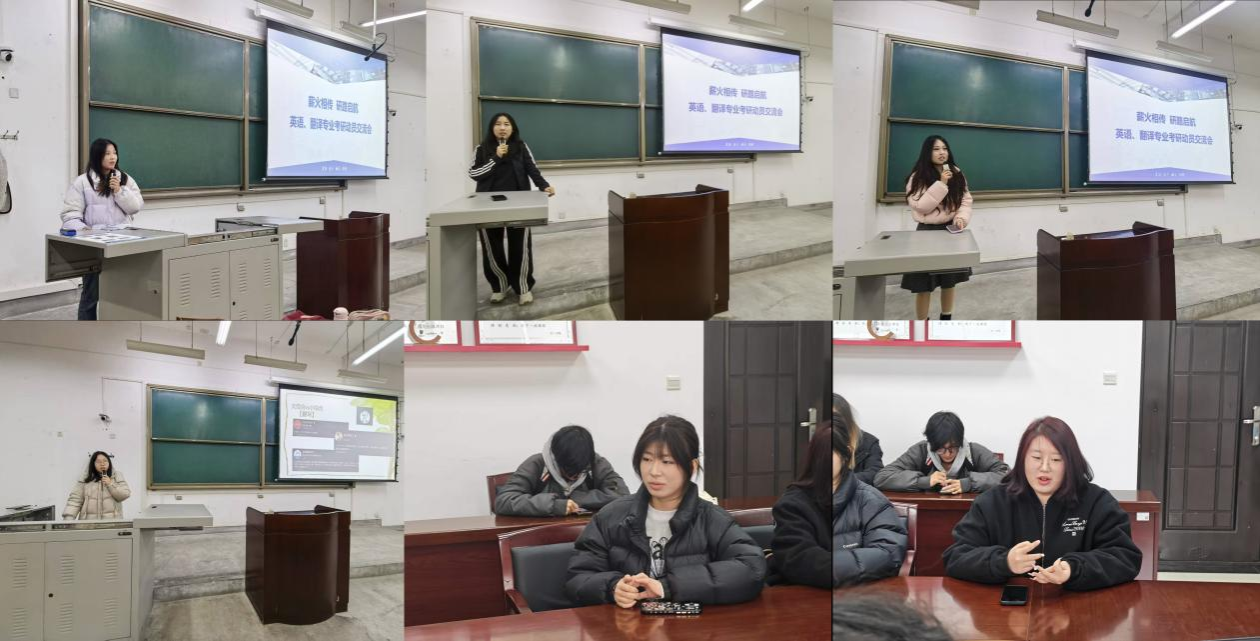 交流會上,受邀分享的優(yōu)秀學(xué)姐們結(jié)合自身備考經(jīng)歷,從報考擇校、復(fù)習(xí)規(guī)劃、心態(tài)調(diào)整、資料選擇等多個關(guān)鍵環(huán)節(jié)傾囊相授,干貨滿滿。英語翻譯專業(yè)方向,張卓怡詳細講解了長安大學(xué)外國語言文學(xué)專業(yè)的報考難度、參考書目及復(fù)試重點,分享了如何平衡專業(yè)基礎(chǔ)與翻譯能力的提升技巧;孫倩茹聚焦西北大學(xué)英語筆譯專業(yè),拆解了筆譯備考的核心要點,結(jié)合真題實例講解了翻譯技巧與答題規(guī)范;李小蘭針對本校英語筆譯專業(yè),分享了備考的時間規(guī)劃的復(fù)習(xí)節(jié)奏,建議學(xué)弟學(xué)妹們立足本校優(yōu)勢,夯實基礎(chǔ)、科學(xué)備考;代佳饒則分享了自己的支教保研經(jīng)歷,從支教工作要求、保研申請流程、材料準備等方面,為有保研意愿的學(xué)子提供了清晰指引。