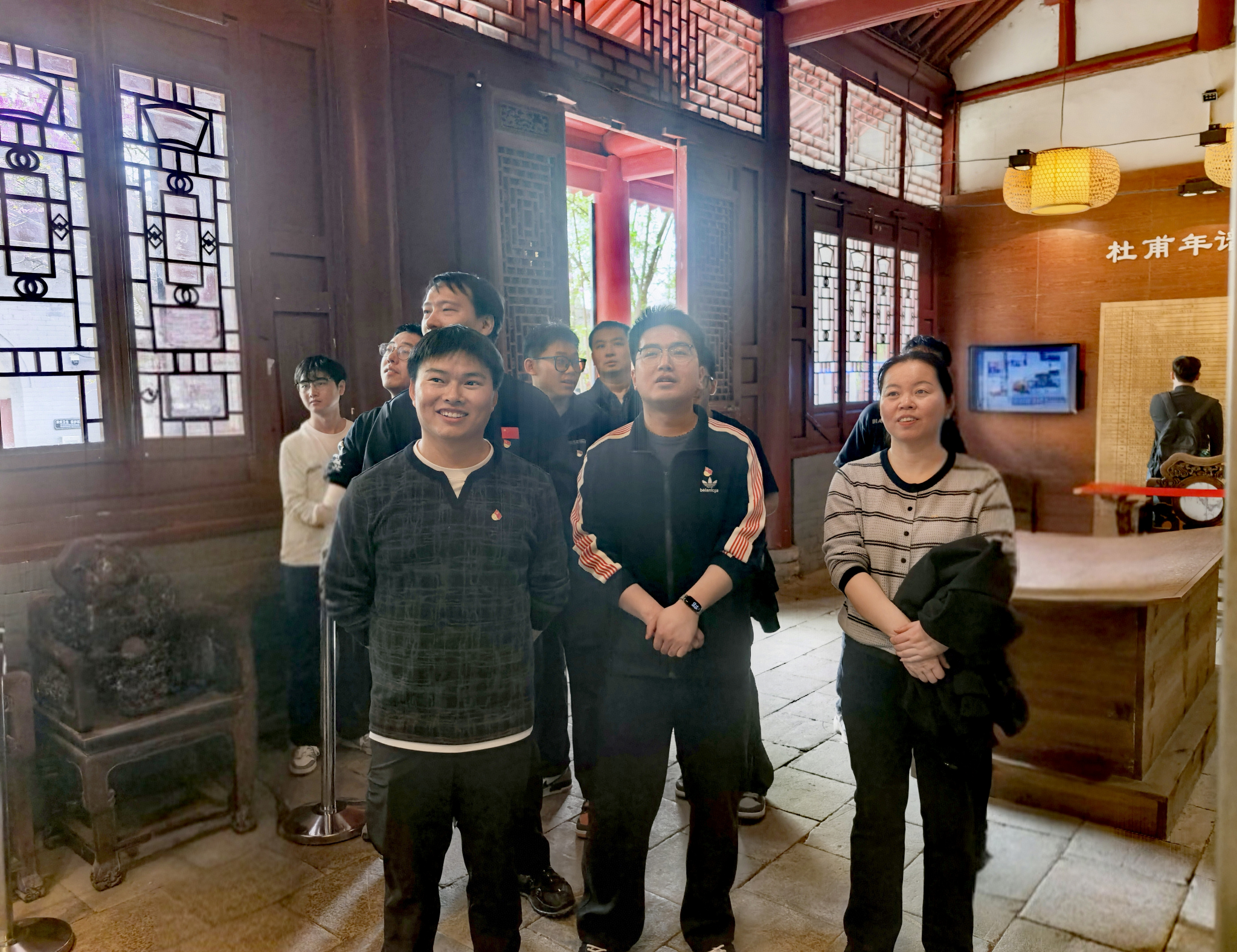 杜公祠作為紀(jì)念詩(shī)圣杜甫的文化地標(biāo),承載著厚重的歷史文脈?;顒?dòng)中,同學(xué)們依次參觀了祠內(nèi)殿宇、展室與碑刻,聆聽(tīng)杜甫生平事跡與詩(shī)歌創(chuàng)作歷程,品讀經(jīng)典詩(shī)篇,深切感受其憂(yōu)國(guó)憂(yōu)民、堅(jiān)守理想的高尚風(fēng)骨,領(lǐng)略傳統(tǒng)詩(shī)詞的文化魅力。參觀現(xiàn)場(chǎng),同學(xué)們結(jié)合專(zhuān)業(yè)科研與母校精神交流感悟,即興賦詞抒懷。更有學(xué)子以詩(shī)禮贊母校,將詩(shī)圣情懷與西石大“好學(xué)力行、自強(qiáng)不息”的校訓(xùn)精神相融,抒發(fā)報(bào)國(guó)科研之志。