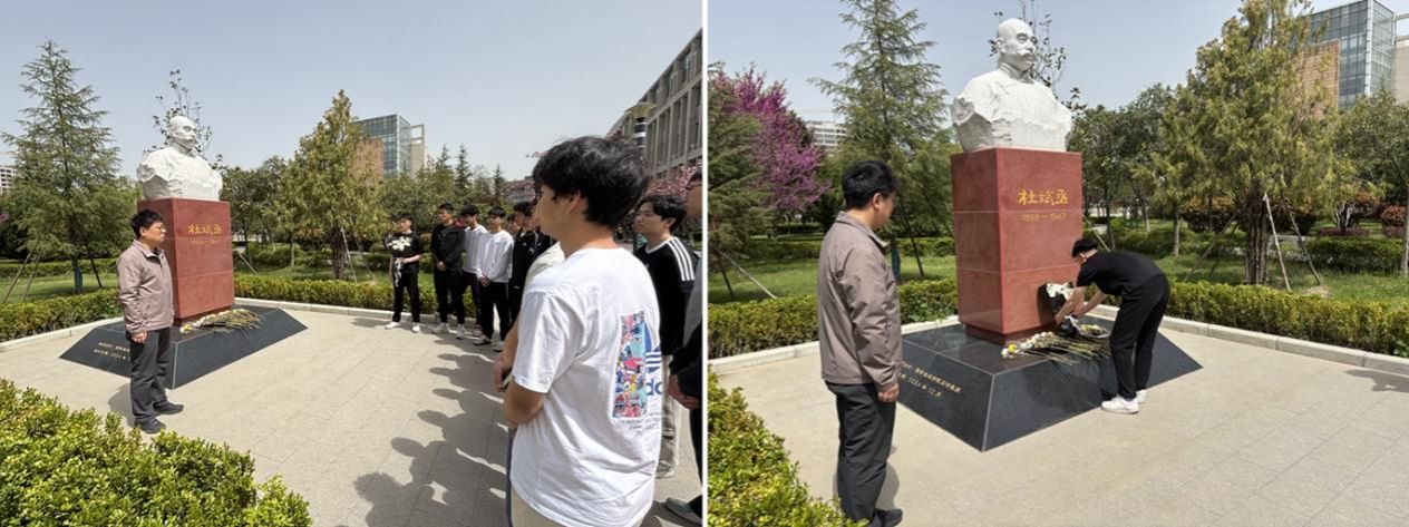 隨后,全體人員來到學(xué)校杜斌丞烈士紀(jì)念雕塑前,舉行莊重的緬懷獻(xiàn)花儀式。同學(xué)們整齊列隊(duì)、神情肅穆,向?yàn)槊褡褰夥?、民主革命事業(yè)英勇獻(xiàn)身的杜斌丞烈士默哀,表達(dá)對(duì)革命先烈的深切哀思與崇高敬意。默哀結(jié)束后,學(xué)生黨員代表緩步上前,向烈士雕塑敬獻(xiàn)鮮花,以樸素莊重的形式,緬懷先烈功績,傳承紅色基因。