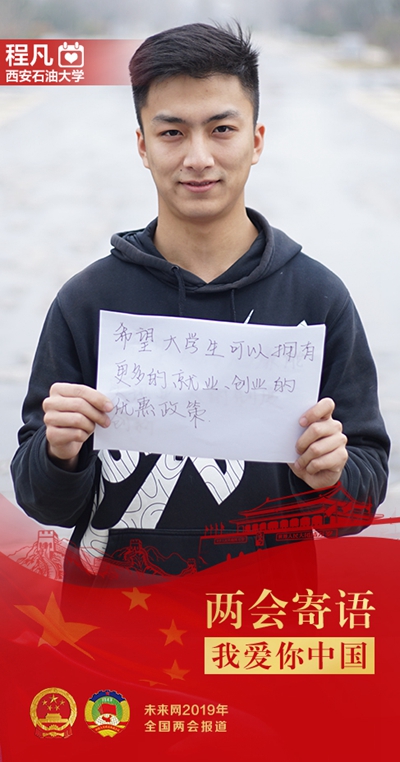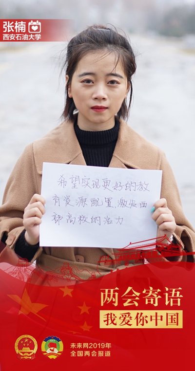 2019年3月,舉世矚目的全國“兩會”即將召開。“未來網(wǎng)”特地推出了“兩會寄語”欄目,我校黨委宣傳部推薦的三名大學生的寄語被“未來網(wǎng)”采用,與中國人民大學、廣西大學等高校大學生的寄語一起刊發(fā)。