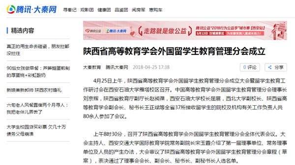 陜西省高等教育學(xué)會外國留學(xué)生教育管理分會是陜西省首次成立的留學(xué)生教育管理學(xué)會組織,對于搭建在陜院校間留學(xué)生工作教育交流平臺,促進我省留學(xué)生教育事業(yè)發(fā)展,服務(wù)我省“一帶一路”建設(shè)具有積極意義。