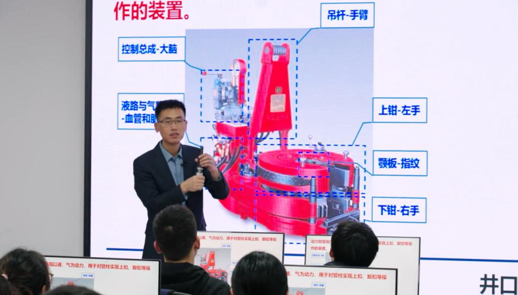 在課程思政教學實踐中,李萬鐘老師對“立德樹人”和“課程思政”的教學理念有深刻的認識和積極的態(tài)度,深度重視“課程思政”的價值和作用,將“課程思政”元素穿插在教學過程中。比如在講解《石油鉆采機械》課程時,李老師通過講解全自動一鍵式鉆機系統(tǒng)、鉆井機器人技術、智慧油田開采技術等,引入“在改革創(chuàng)新和科技發(fā)展的過程中我國已成為全球少數(shù)可自主研制自動化鉆機的國家之一”這一信息,激發(fā)學生的愛國主義熱情和民族自豪感。