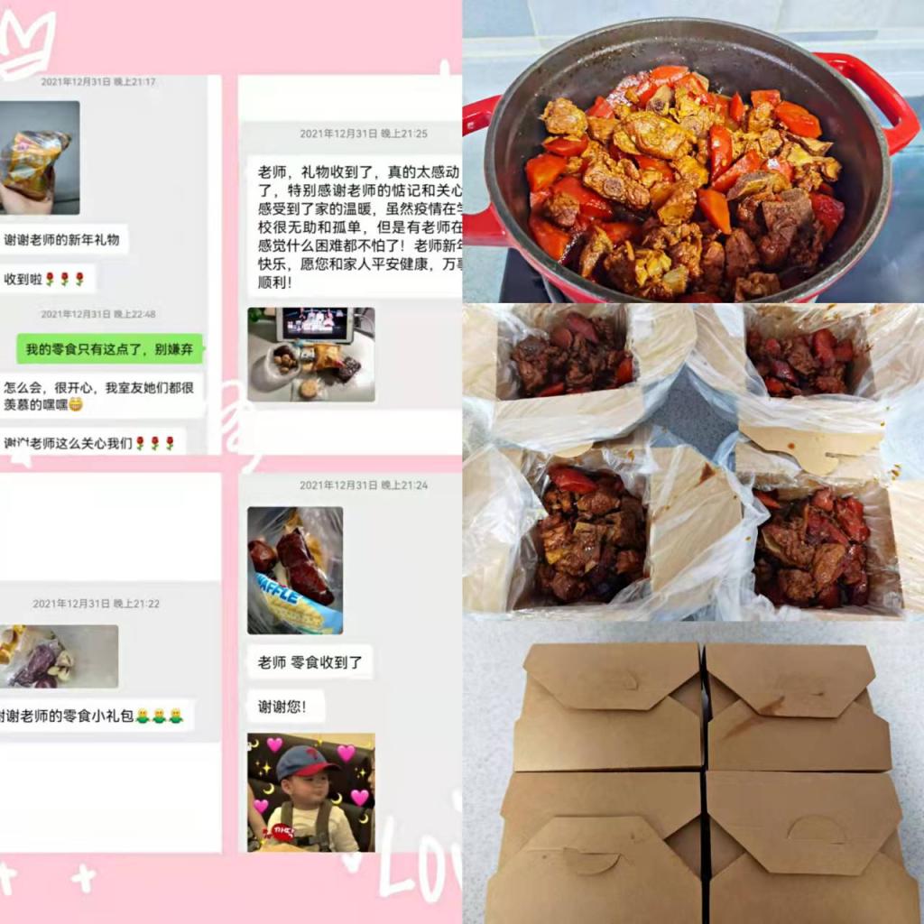 有一種甜刻入記憶,有一種香沉入心田。經(jīng)濟(jì)管理學(xué)院人力黨支部朱海娟老師用了整整一下午的時(shí)間烘焙了兩烤箱的蛋撻,并且和楊睿娟老師一同將剛出爐的食物第一時(shí)間送到研究生志愿者手中。夜幕襯托著食物騰騰熱氣暖到心間,冬日的蕭瑟抵不過蛋撻入口的香甜,志愿者一天的辛苦也隨著滿滿的甜蜜在冷風(fēng)中消逝,金黃的蛋撻不僅甜了嘴巴更融了寒冷。一個(gè)人遇到好老師是人生的幸運(yùn),一個(gè)學(xué)校擁有好老師是學(xué)校的光榮,一個(gè)民族源源不斷涌現(xiàn)出一批又一批好老師則是民族的希望。經(jīng)濟(jì)管理學(xué)院的老師踐行了教師的職責(zé)與使命,他們以身作則的工作態(tài)度教會學(xué)生盡職盡責(zé),他們無微不至的體貼與關(guān)懷更帶給了學(xué)生愛與希望,如果疫情是電閃雷鳴的狂風(fēng)暴雨,那經(jīng)管師生情就是雨后最美的彩虹。